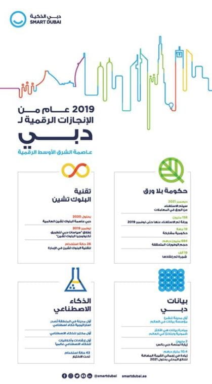 مع اقتراب نهاية العام 2019، كشفت "دبي الذكية" أن الإنجازات التي حققتها إمارة دبي خلال العام المُنقضي في مجال التحوّل الذكي، منحتها الصدارة بين مدن منطقة الشرق الأوسط وشمال أفريقيا وأهلتها بجدارة لتكون عاصمة الشرق الأوسط الرقمية، وهو ما أشارت له تقارير دولية مرموقة معنية بالمدن الذكية واضعةً دبي في مقدمة مدن المنطقة في هذا المجال، بينما جاء ترتيبها متقدماً في تلك التقارير على مدن عالمية كبرى، مع مواصلة الإمارة العمل على تطوير قدراتها التقنية وتوسيع دائرة التحوّل الذكي لتشمل كافة قطاعاتها التنفيذية والخدمية.