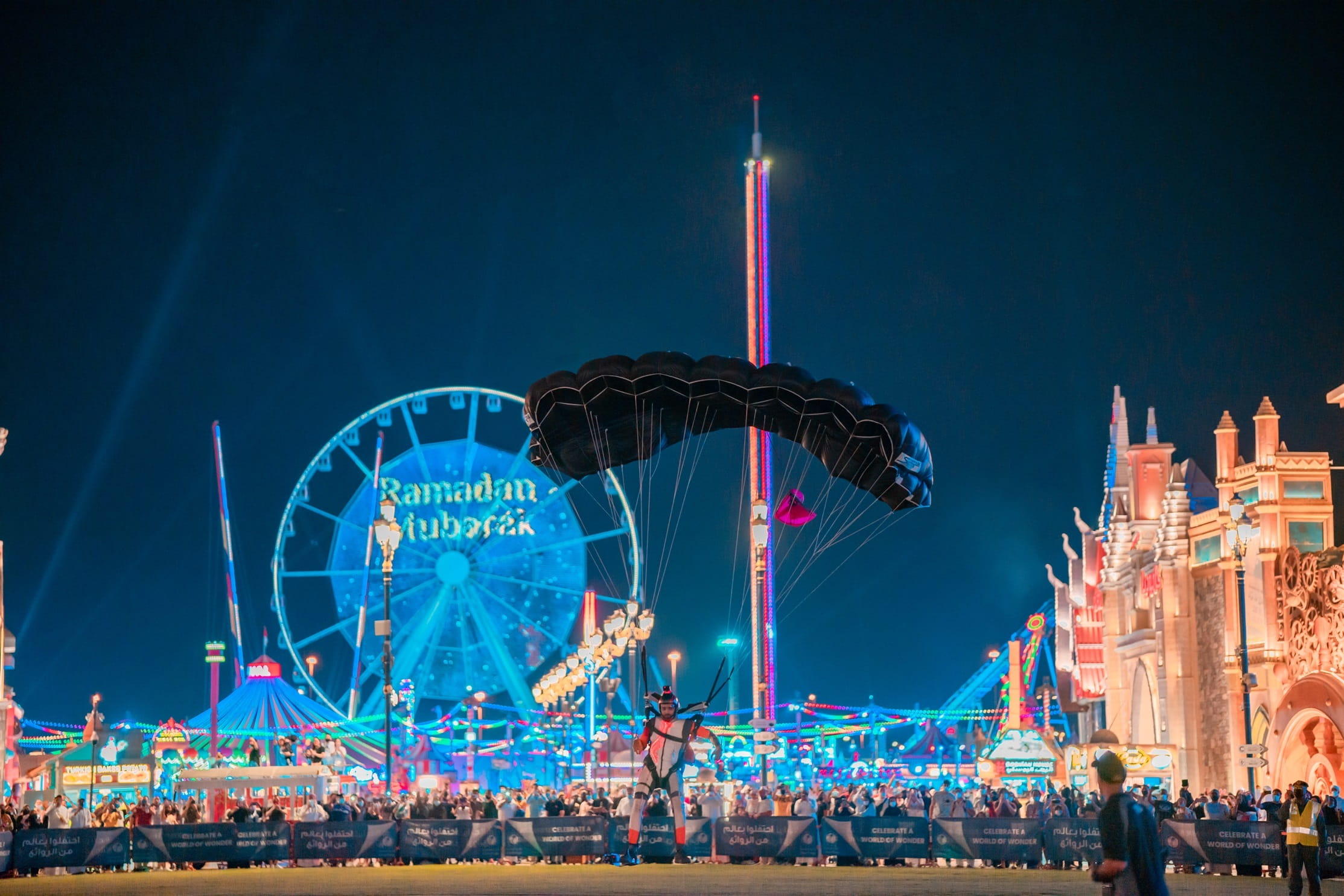 وتمكنت الوجهة العائلية من تحقيق آخر الأرقام القياسية بالتعاون مع سكاي دايف دبي في احتفالية أذهلت ضيوف القرية العالمية في اليوم الأخير من الموسم 25 بعد أن قفز 20 من محترفي القفز الحرّ من ارتفاع يزيد عن 15000 قدم مضيئين السماء بـ 78 لعبة نارية فضية اللون تمثل الثقافات التي شاركت في موسم اليوبيل الفضي.
