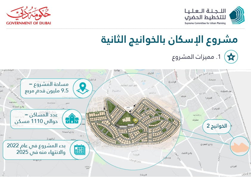 ويعزز توجيه صاحب السمو الشيخ محمد بن راشد آل مكتوم بتخصيص 3500 قطعة أرض في منطقتي أم نهد الرابعة والعوير إنجاز خطط إسكان المواطنين في إمارة دبي، والجهود الحكومية المبذولة من أجل الارتقاء بجودة حياة المواطنين، وتعزيز الاستقرار الاجتماعي لهم ولأسرهم من خلال توفير السكن الملائم، بما يتسق مع منظومة الرفاه المجتمعي والأمن الاجتماعي التي تحرص دولة الإمارات على إرساء دعائمها وترسيخ مقوماتها لمواطنيها، وبما يتوافق مع جهود استكمال تطوير وتنفيذ الاستراتيجية التنموية والحضرية لإمارة دبي كي تكون المدينة الأفضل للعمل والحياة في العالم.
