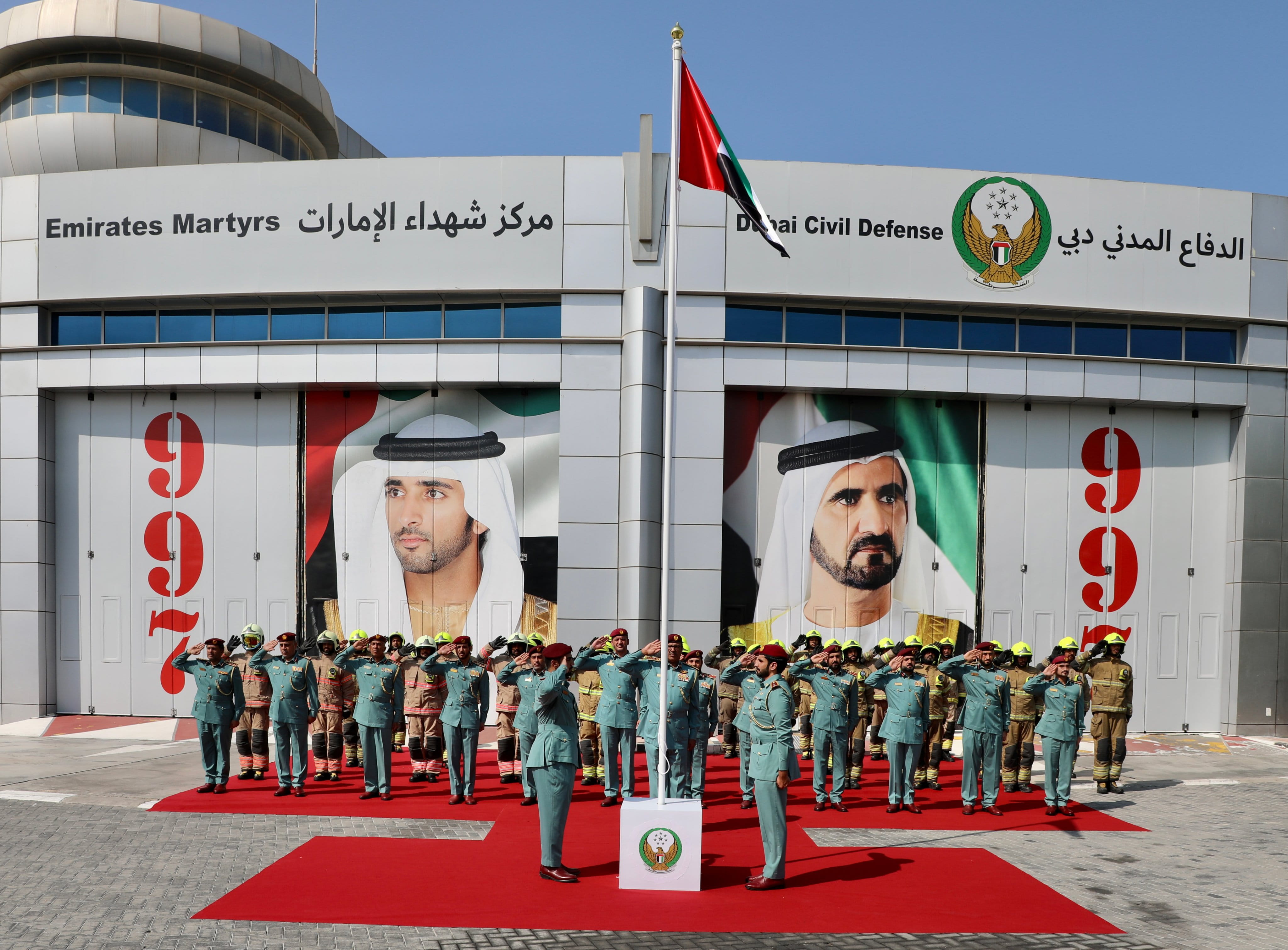 رفع سعادة الفريق خبير راشد ثاني المطروشي مدير عام الإدارة العامة للدفاع المدني بدبي، علم دولة الإمارات العربية المتحدة، على مبنى مركز إطفاء شهداء الإمارات ، في احتفال الإدارة العامة بيوم العلم، تحت شعار " علمنا رمز عزتنا ووحدتنا "، الذي يوافق 3 نوفمبر من كل عام.
