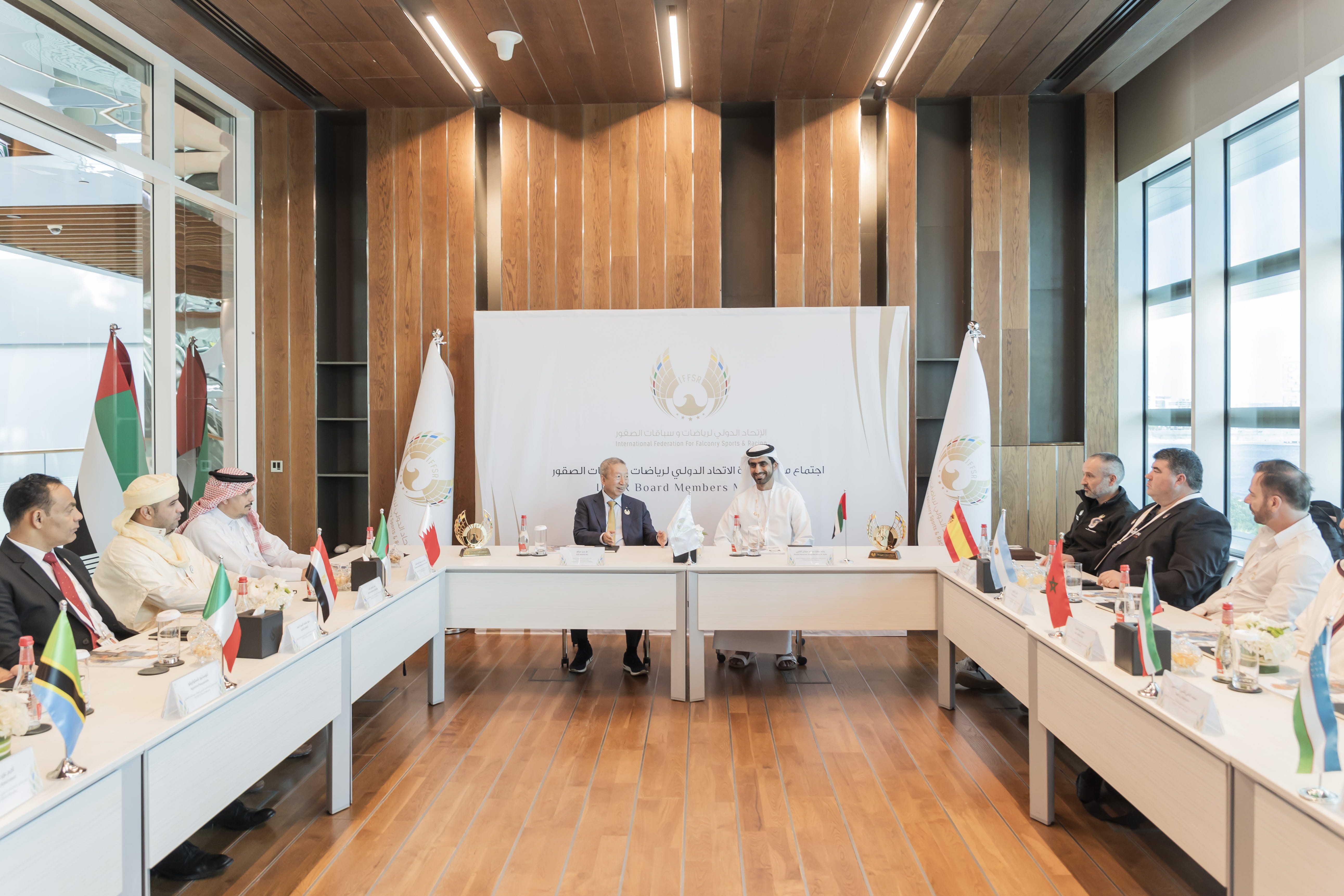 بالتزامن مع ختام فعاليات كأس وملتقى الاتحاد الدولي لرياضات وسباقات الصقور، المنعقد في دبي تحت رعاية سمو الشيخ أحمد بن محمد بن راشد آل مكتوم، النائب الثاني لحاكم دبي رئيس الاتحاد الدولي لرياضات وسباقات الصقور، استقبل سعادة راشد بن مرخان، الأمين العام للاتحاد الدولي لرياضات وسباقات الصقور سعادة نغ سير ميانغ نائب رئيس اللجنة الأولمبية الدولية، بحضور أعضاء مجلس إدارة الاتحاد.
