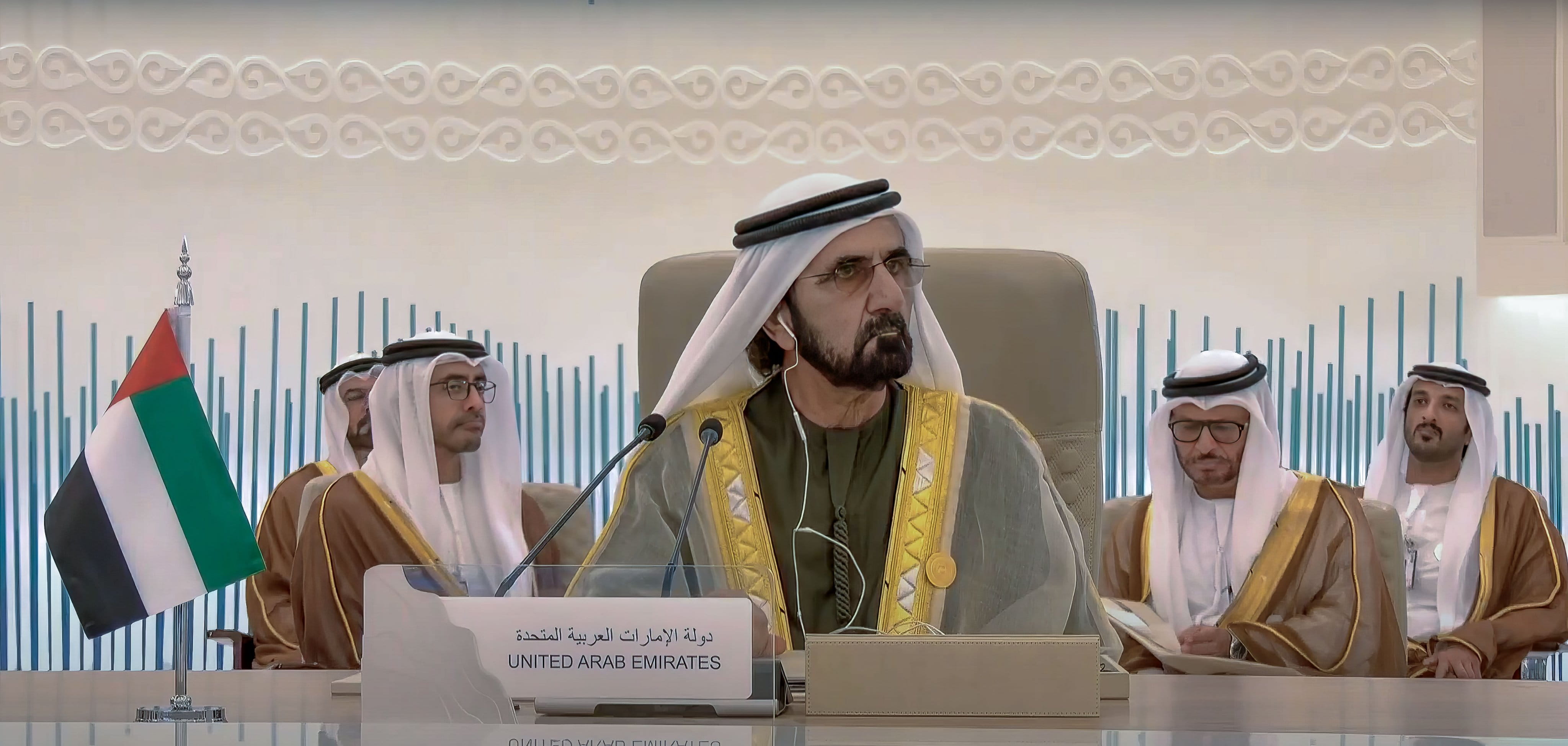 وألقى صاحب السمو الشيخ محمد بن راشد آل مكتوم كلمة نقل فيها تحيات صاحب السمو الشيخ محمد بن زايد آل نهيان، رئيس الدولة، حفظه الله، وصادق تمنياته بالنجاح والتوفيق لما فيه الخير لدول مجلس التعاون وشعوبها.