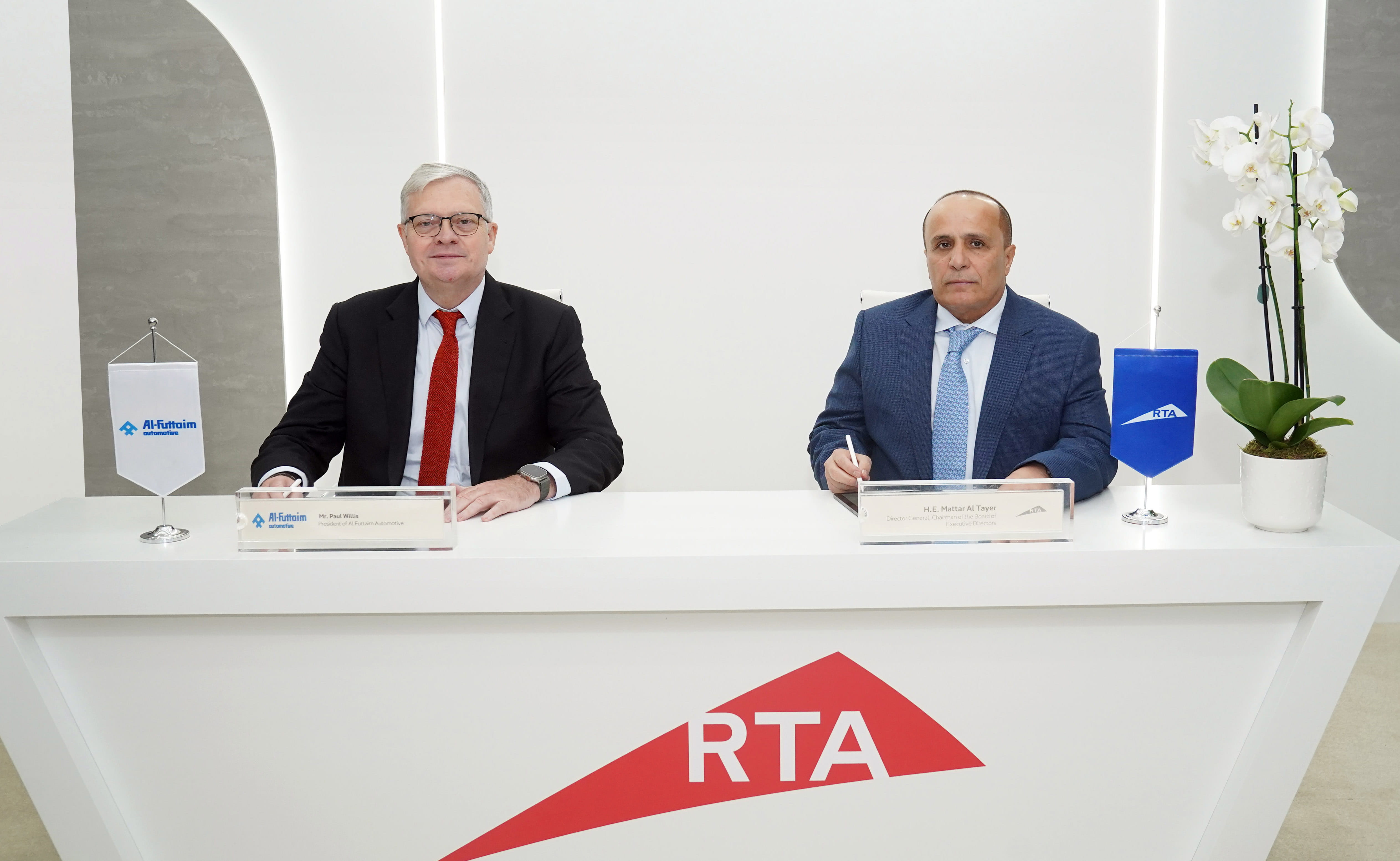 وقع الاتفاقية عن هيئة الطرق والمواصلات، معالي مطر الطاير المدير العام ورئيس مجلس المديرين في الهيئة، وعن مجموعة الفطيم للسيارات، السيد بول ويليس، رئيس مجموعة الفطيم للسيارات، بحضور عدد من المسؤولين من الجانبين، وذلك على هامش مشاركة الهيئة في القمة العالمية للاتحاد العالمي للمواصلات العامة التي عقدت في برشلونة