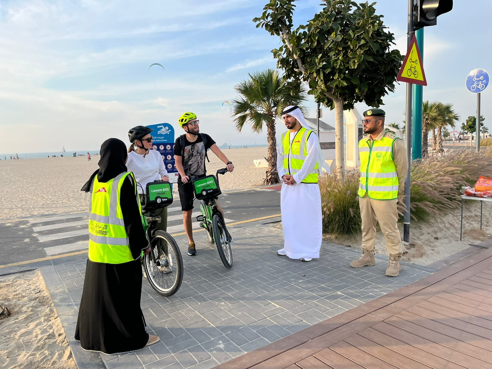 نظمت هيئة الطرق والمواصلات والقيادة العامة لشرطة دبي حملات ضبطية وفعاليات توعوية وإرشادات تثقيفية لسائقي الدراجات الهوائية ومستخدمي السكوتر الكهربائي، وشملت الفعاليات التوعوية العديد من الوسائل والقنوات بما في ذلك النزول الميداني المباشر والإعلانات التوعوية والإرشادية في وسائل الإعلام والتواصل الاجتماعي. وأكدت الجهتين سعيهما إلى تعميم رسائل التوعية المرورية إلى الجمهور، بما في ذلك سائقي الدراجات الهوائية ومستخدمي السكوتر الكهربائي، مما يدعم ذلك استراتيجية السلامة المرورية في دبي، واستراتيجية دبي مدينة صديقة للدراجات الهوائية.