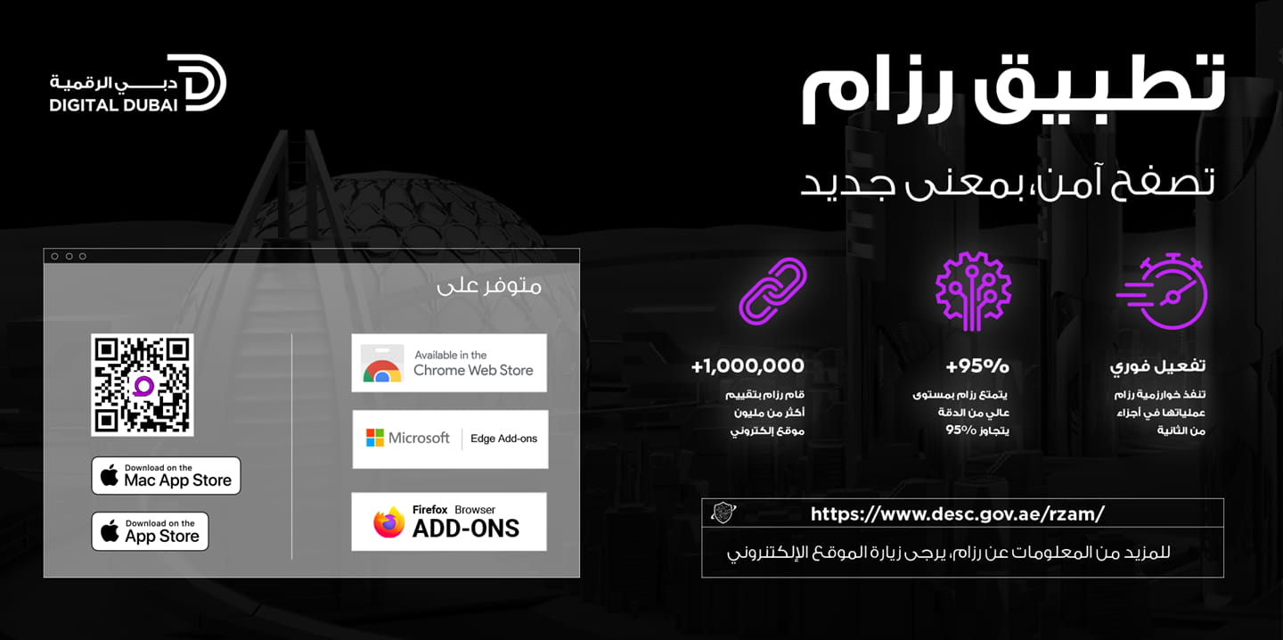 ويوفر "رزام" سرعة ودقة لا مثيل لها في أي تطبيق أو برنامج آخر، في رصد المواقع غير الآمنة، والتكيف مع التهديدات السيبرانية الناشئة من خلال التحديث المعرفي المستمر للبيانات ما يجعله حلاً مطوراً محلياً يعكس الالتزام بخلق بيئة آمنة وموثوقة عبر الإنترنت، تتماشى مع المبادئ الرئيسية لاستراتيجية دبي للأمن الإلكتروني بدورتها الثانية، حيث يدعم التطبيق مبدأ "التدفق الحر للمعلومات والانفتاح" للتمتع بحق الوصول الآمن والمرن لمستخدمي الإنترنت، من دون قلق من المحتوى الضار على الشبكة. كما يعزز وجود بيئة آمنة وداعمة للابتكار والتبادل الآمن للأفكار والمعلومات والآراء.