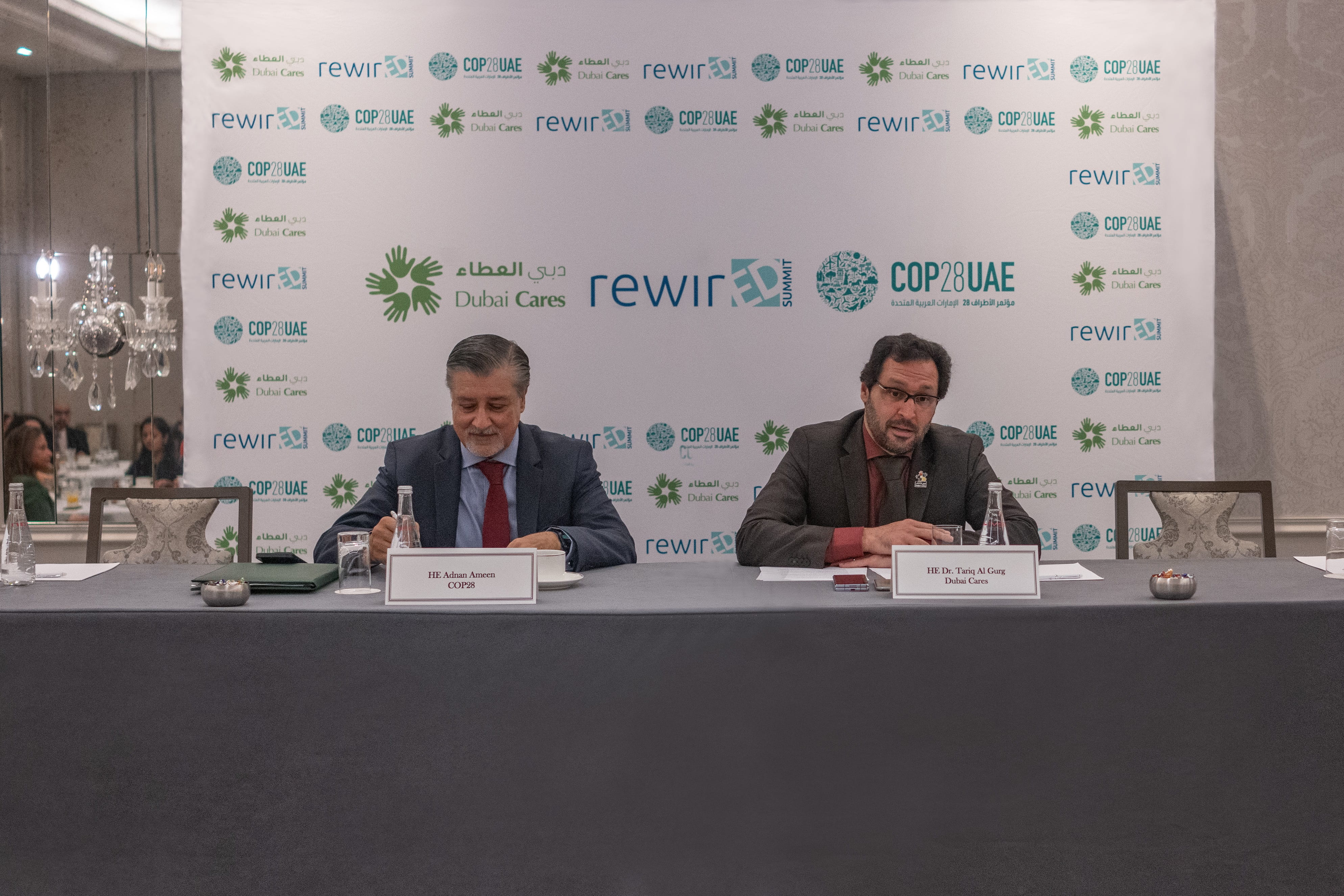 خلال الجلسة، شددت رئاسة مؤتمر الأطراف ودبي العطاء على التزام دولة الإمارات بترسيخ التعليم في صميم أجندة المناخ، وذلك من خلال تخصيص يوم كامل حول " الشباب والأطفال والتعليم والمهارات" في 8 ديسمبر 2023 ضمن أجندة المؤتمر، حيث ستحتضن دبي العطاء الدورة الثانية من قمة ريوايرد. وتهدف القمة، التي تسعى إلى ربط الأهداف المشتركة ما بين أجندة المناخ والتعليم كخطة موحدة لترسيخ مكانة تحويل التعليم العالمي في صدارة جدول أعمال المناخ. ستجمع قمة "ريوايرد" التعليمية العالمية أصواتاً وقطاعات مختلفة، بما في ذلك رؤساء الدول والحكومات وقطاعات التعليم والمناخ والمجتمع المدني ومنظمات الأمم المتحدة والوكالات المتعددة الأطراف والقطاع الخاص ومجتمعات السكان الأصليين والشباب بهدف إعادة صياغة مشهد التعليم الحالي وإعادة التفكير فيه وإعادة تصوره من أجل مستقبل البشرية والكوكب.