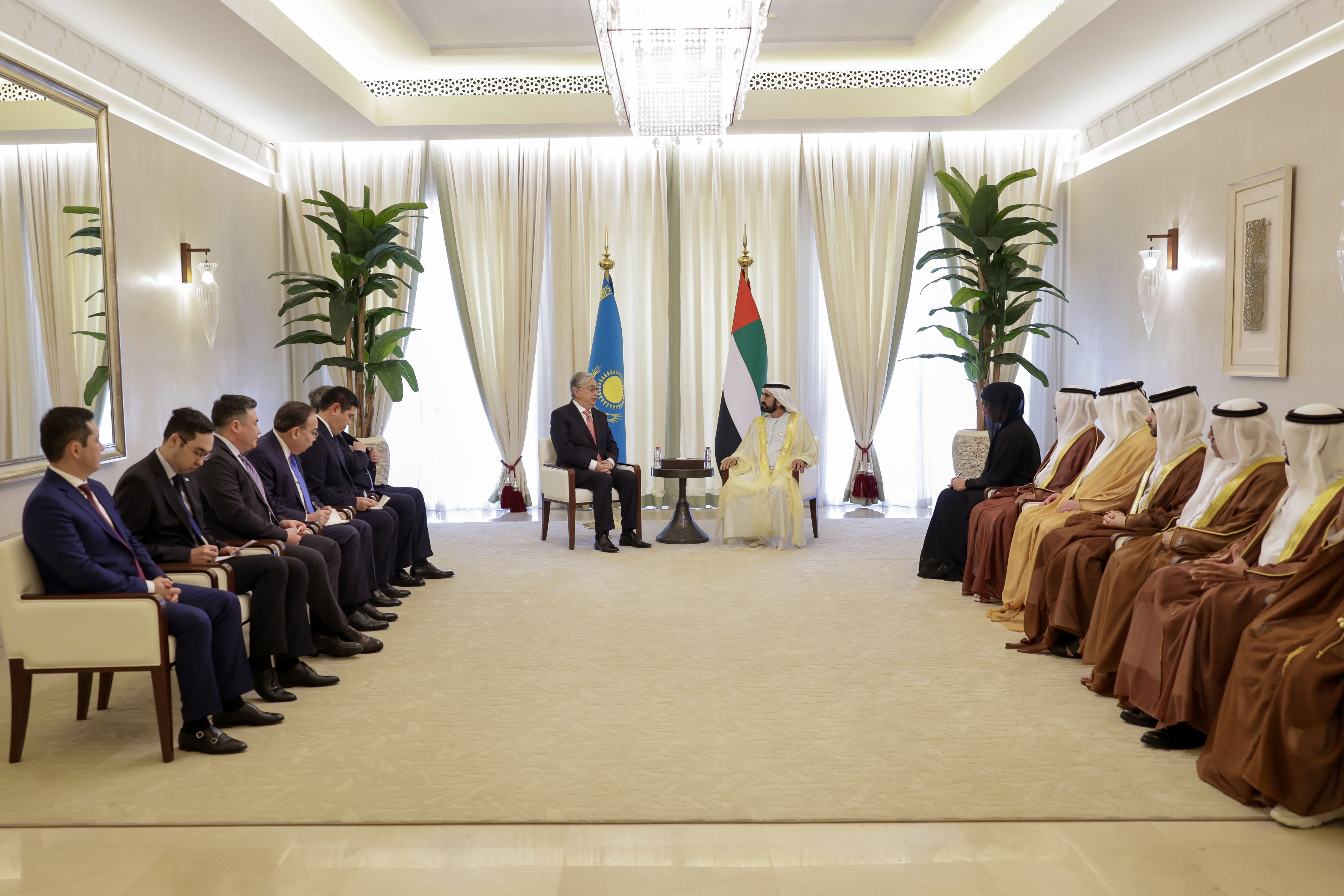 وأكد صاحب السمو الشيخ محمد بن راشد آل مكتوم حرص دولة الإمارات على الارتقاء بالشراكة الاستراتيجية مع جمهورية كازاخستان تأسيساً على ما مرت به من مراحل مهمة على مدار العقود الماضية، وعلى أساس راسخ من التفاهم والاحترام والتقدير المتبادلين، وتوافق الرؤى حول أهمية اكتشاف وتطوير مسارات جديدة للتعاون تدعم هذه الشراكة خلال المرحلة المقبلة مع التركيز على المجالات المستقبلية.