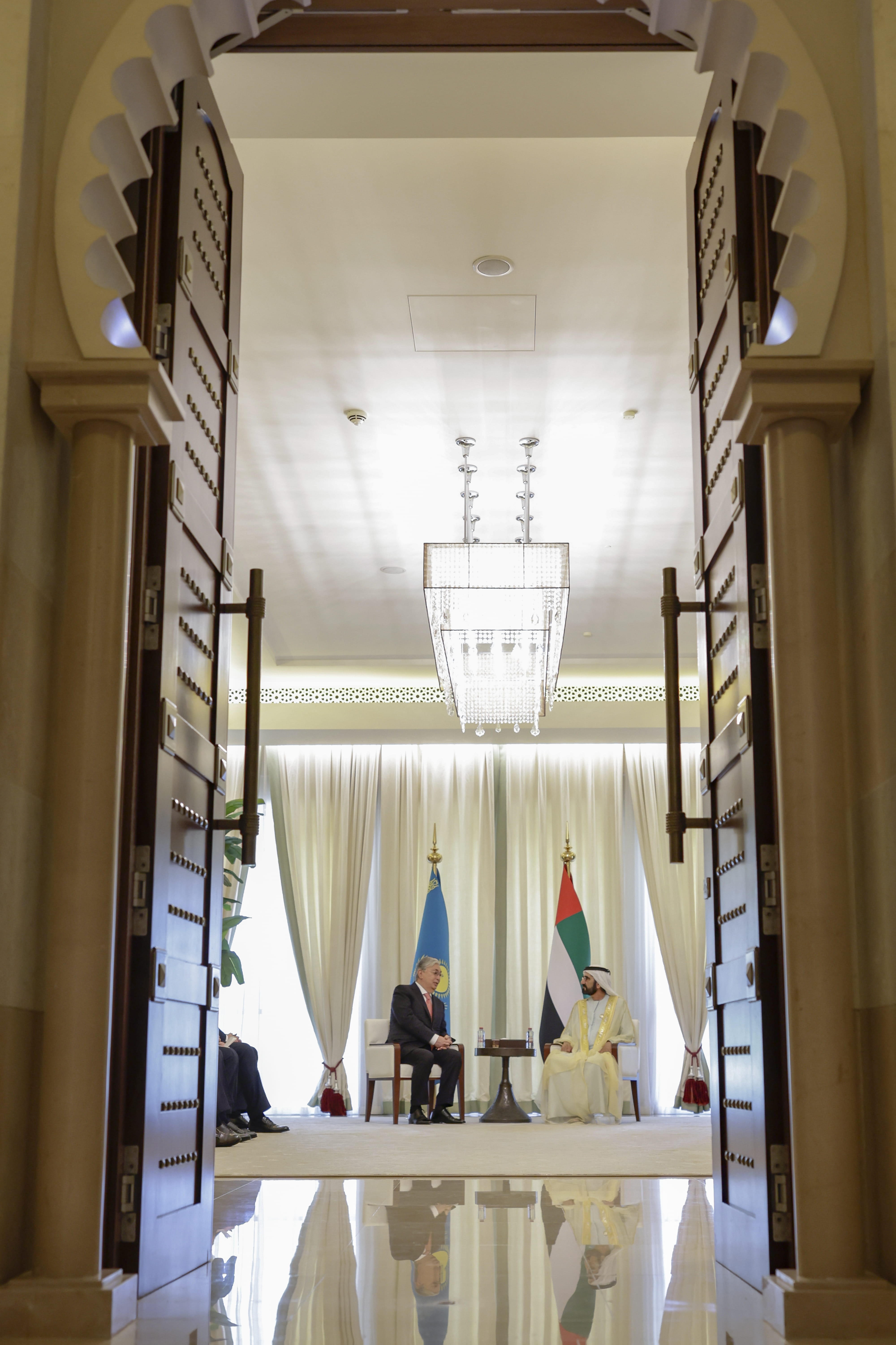 استقبل صاحب السمو الشيخ محمد بن راشد آل مكتوم، نائب رئيس الدولة رئيس مجلس الوزراء حاكم دبي، رعاه الله، فخامة قاسم جومارت توكاييف، رئيس جمهورية كازاخستان الصديقة، وذلك في قصر البحر في دبي.