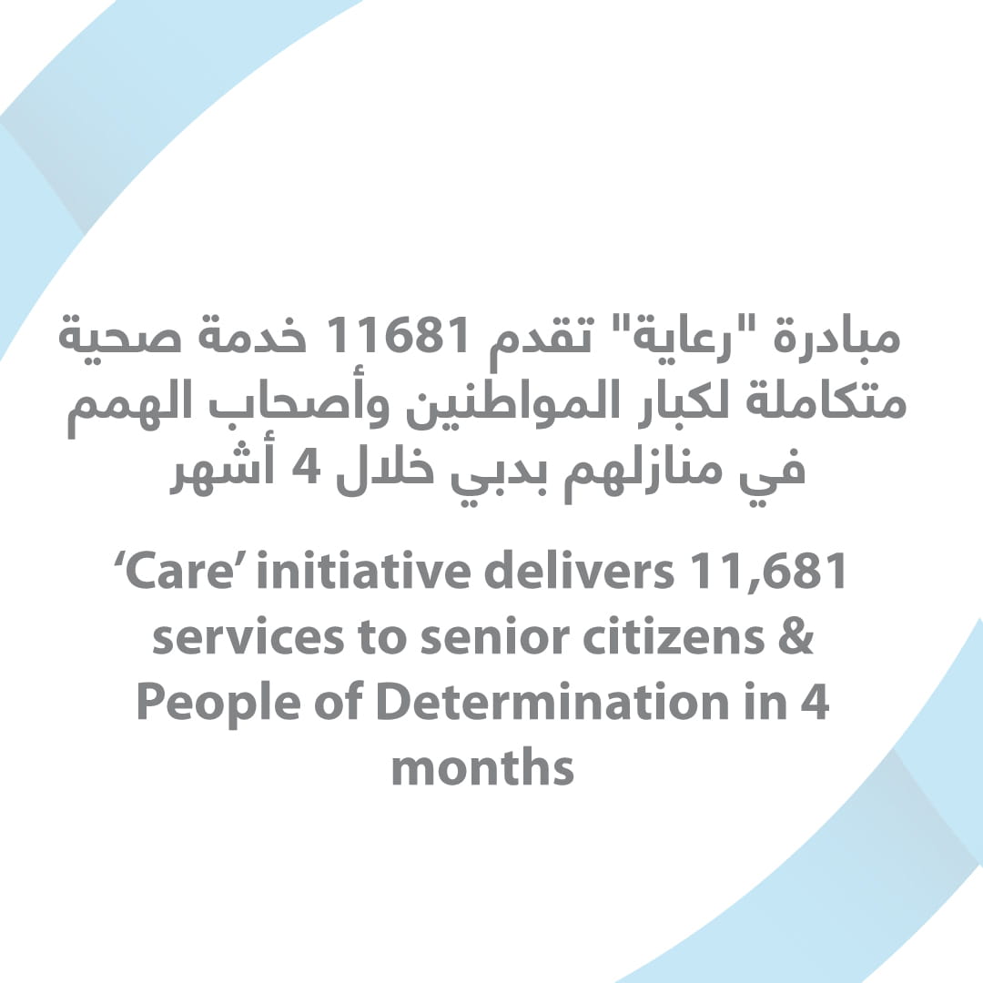 قدمت مبادرة "رعاية" التي أطلقها سمو الشيخ حمدان بن محمد بن راشد آل مكتوم، ولي عهد دبي رئيس المجلس التنفيذي لإمارة دبي، رئيس اللجنة العليا للتنمية وشؤون المواطنين في مايو الماضي، 11681 خدمة صحية متكاملة مخصصة لكبار المواطنين وأصحاب الهمم في منازلهم بدبي، وذلك خلال 4 أشهر.