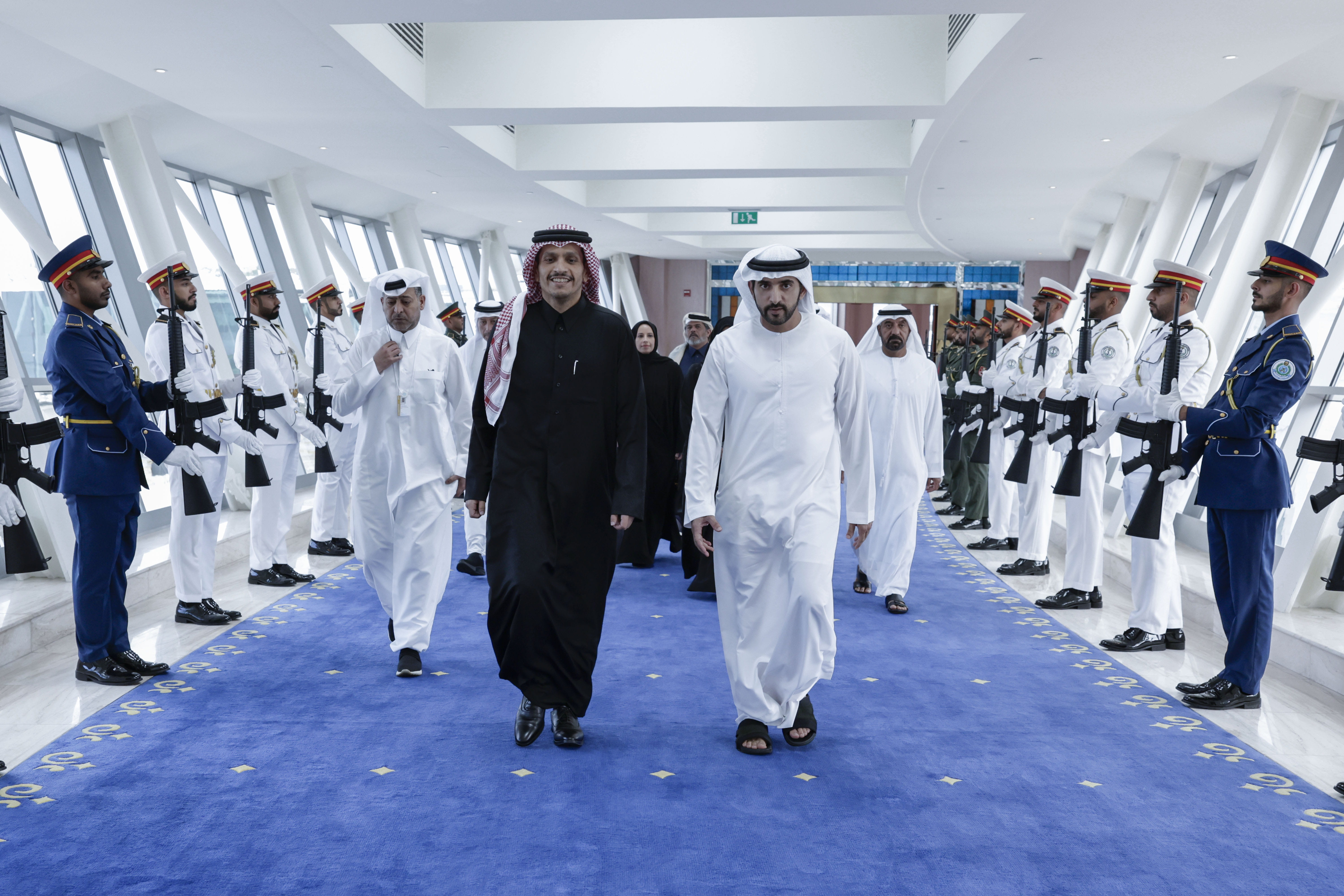 حمدان بن محمد في مقدمة مستقبلي رئيس مجلس الوزراء القطري