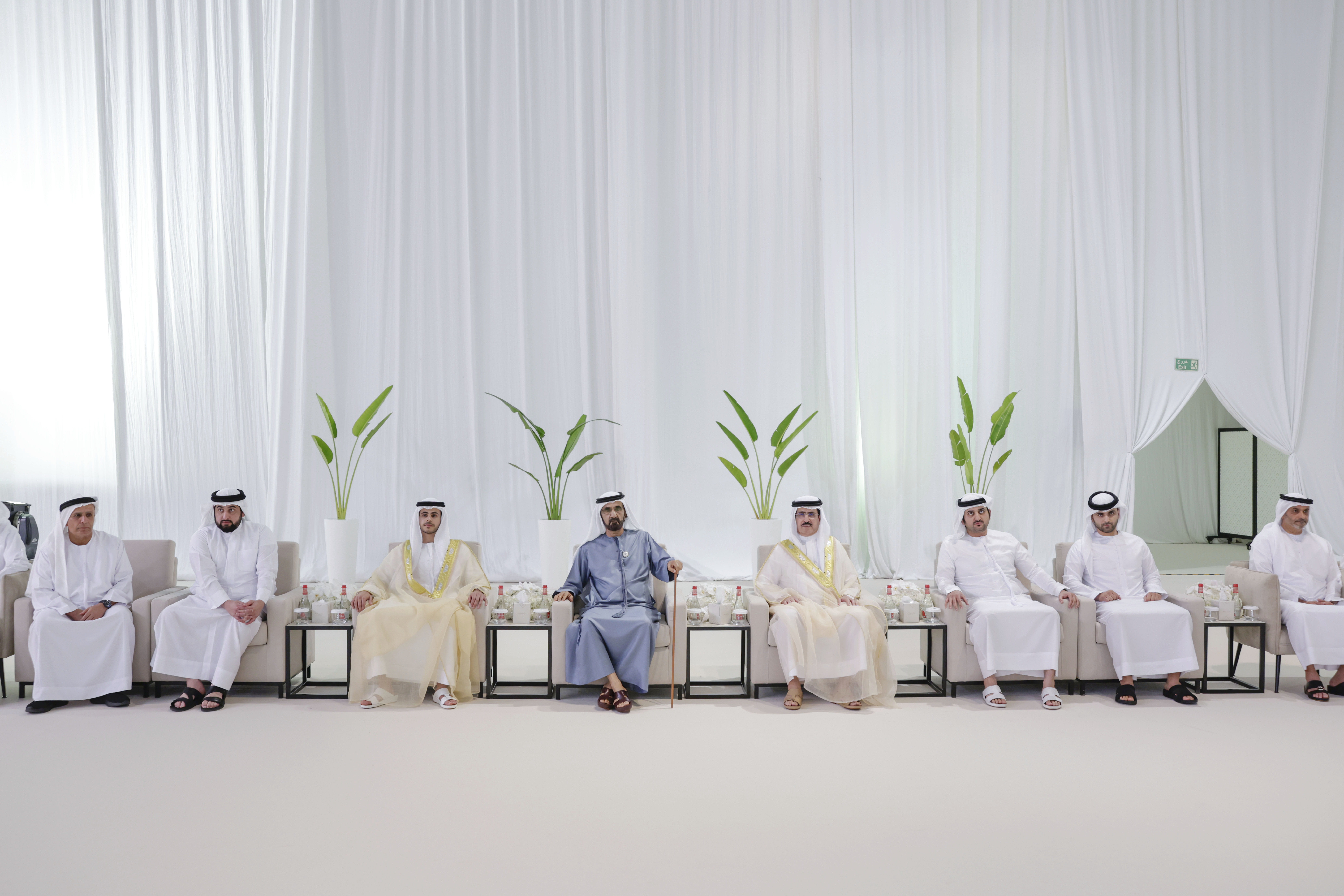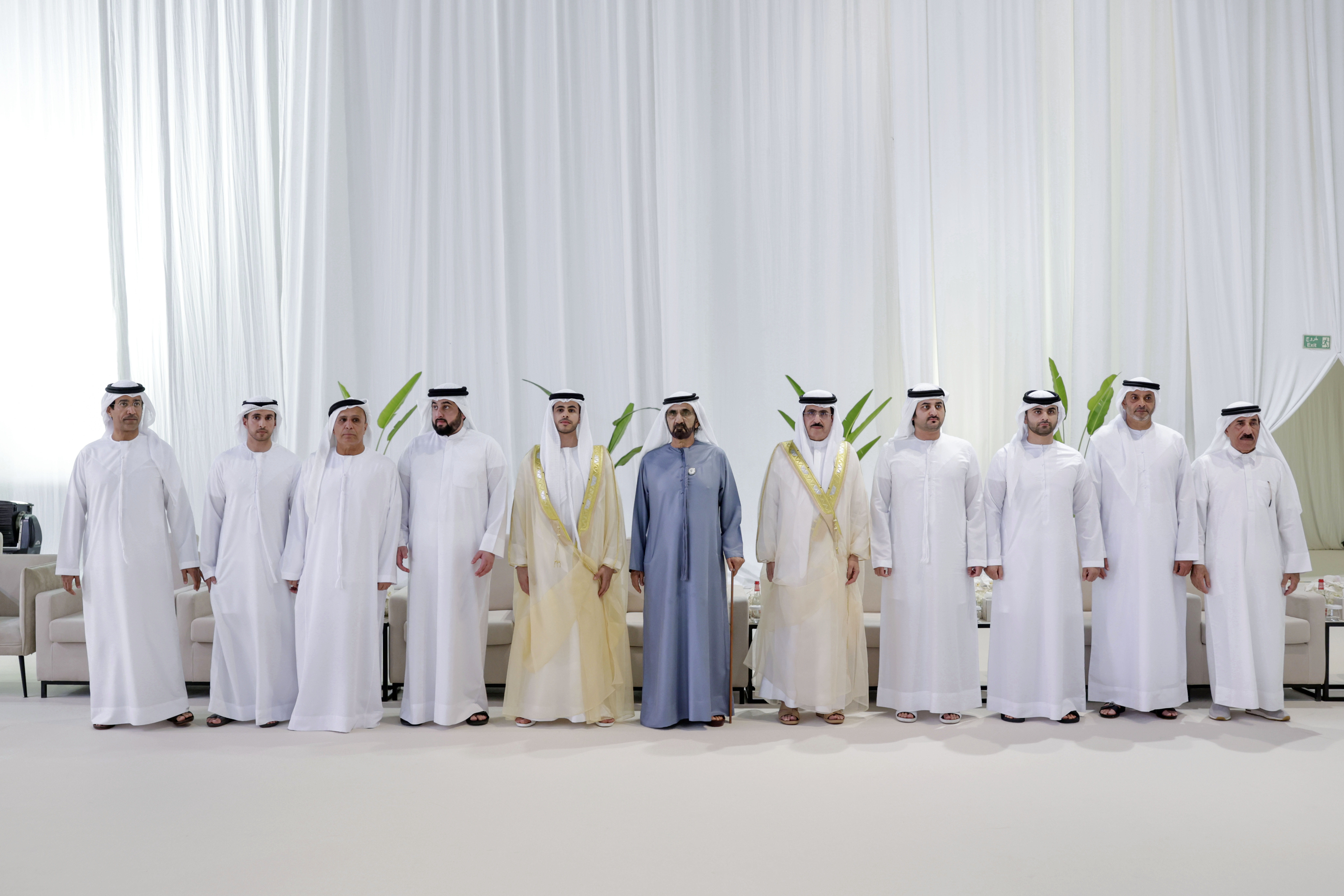 حضر صاحب السمو الشيخ محمد بن راشد آل مكتوم، نائب رئيس الدولة رئيس مجلس الوزراء حاكم دبي، رعاه الله، اليوم (الأحد) يرافقه سمو الشيخ مكتوم بن محمد بن راشد آل مكتوم، النائب الأول لحاكم دبي نائب رئيس مجلس الوزراء للشؤون المالية والاقتصادية، وسمو الشيخ أحمد بن محمد بن راشد آل مكتوم، النائب الثاني لحاكم دبي، وسمو الشيخ منصور بن محمد بن راشد آل مكتوم، رئيس مجلس دبي الرياضي، حفل الاستقبال الذي أقامه معالي سعيد محمد الطاير، العضو المنتدب الرئيس التنفيذي لهيئة كهرباء ومياه دبي، بمناسبة زفاف نجله محمد إلى كريمة أحمد ماجد المهيري، بمركز دبي التجاري العالمي.