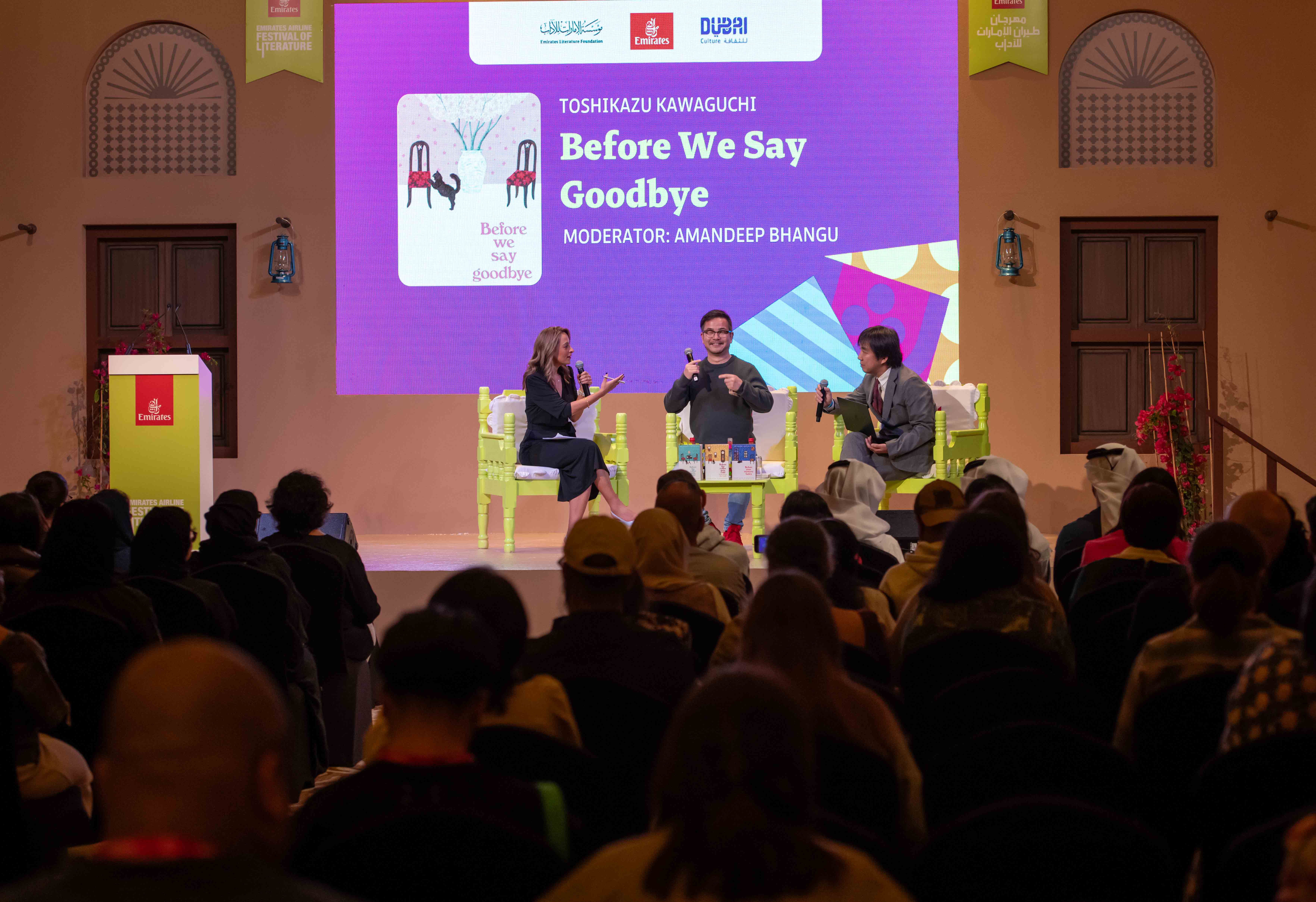كما قدمت الشيخة موزة بنت مروان آل مكتوم جلسة حول كتابها، "حين عانقت السماء"، والذي تم إطلاقه خلال المهرجان. وتضمنت أجندة الفعاليات جلسات مميزة مع سعادة الفريق محمد أحمد المري، معالي محمد أحمد المر ود. رفيعة غباش. وخلال المهرجان، أعلن الأديب الياباني البارز توشيكازو كاواجوتشي أنه يعمل على روايته السادسة فيما أعلنت نجمة "بوك توك" والكاتبة المشهورة، ريبيكا ياروس، أنها تعمل على روايتها الثالثة ضمن سلسلة "الجناح الرابع".