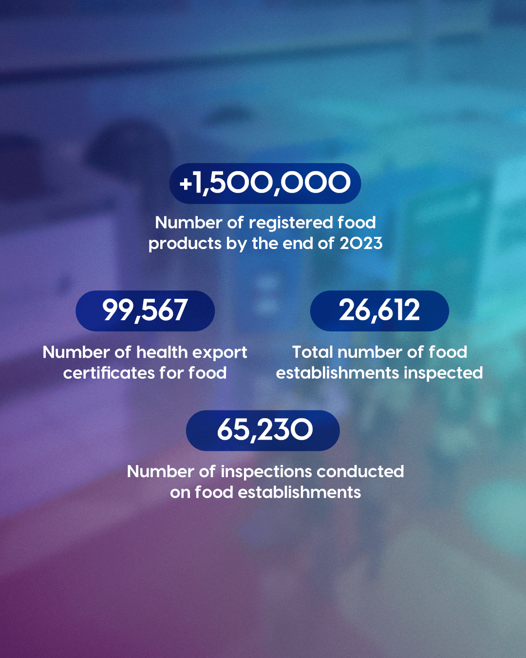 كما وصل إجمالي وزن الشحنات الغذائية التي فتشتها البلدية إلى 7 مليون و367 ألف و163 طناً، شملت أكثر من 2 مليون و272 ألف و400 صنف غذائي. كما بلغ عدد الشحنات الغذائية المُفتشة أكثر من 363,553 ألف شحنة غذائية، ونحو 533,790 حاوية أغذية.