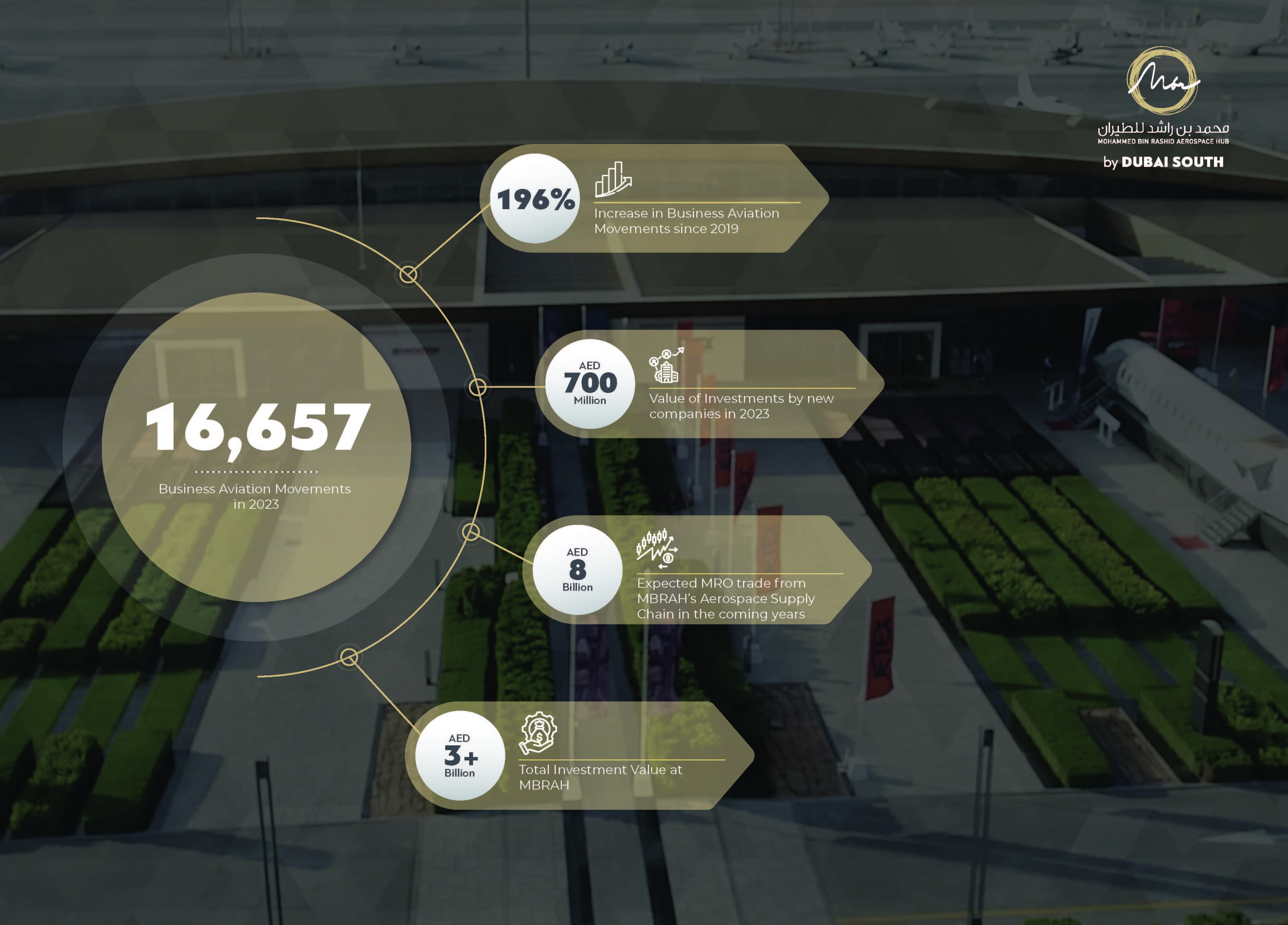 شهد مشروع محمد بن راشد للطيران خلال عام 2023 تسجيل نتائج قياسيّة هي الأعلى على الإطلاق بدبي من حيث حركة الطيران الخاص، والتي وصلت إلى 16,657 رحلة بنموّ 8% مقارنة بعام 2022. وهناك العديد من العوامل التي أسهمت في نمو الحركة، مثل استضافة مؤتمر الأطراف "COP28" ومعرض دبي للطيران 2023، بالإضافة إلى الافتتاح التجريبي لحظيرة ExecuJet الجديدة. ويؤكد هذا النمو على مكانة مطار آل مكتوم الدولي باعتباره أكثر المطارات ازدحامًا في حركة الطيران الخاص بالمنطقة.