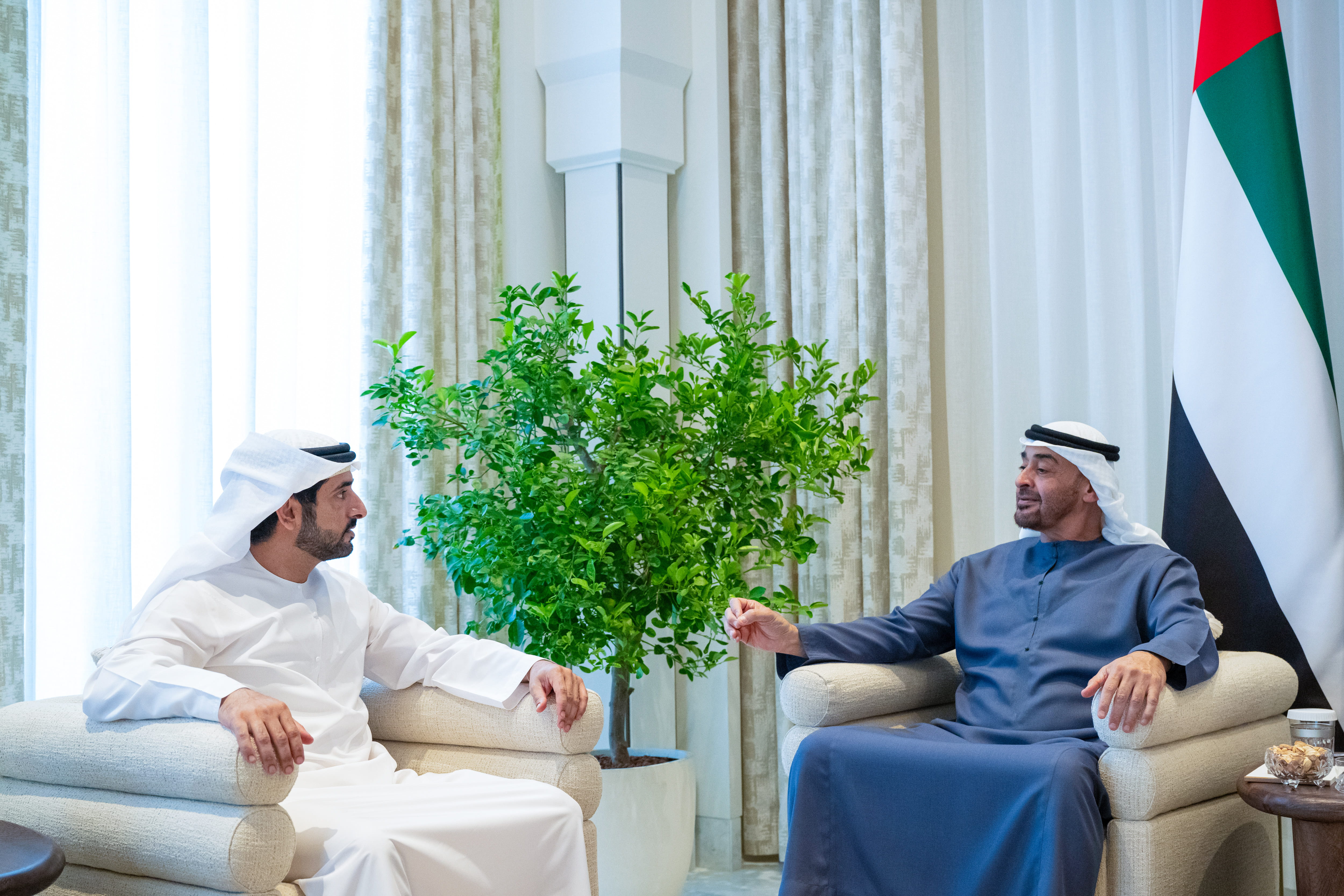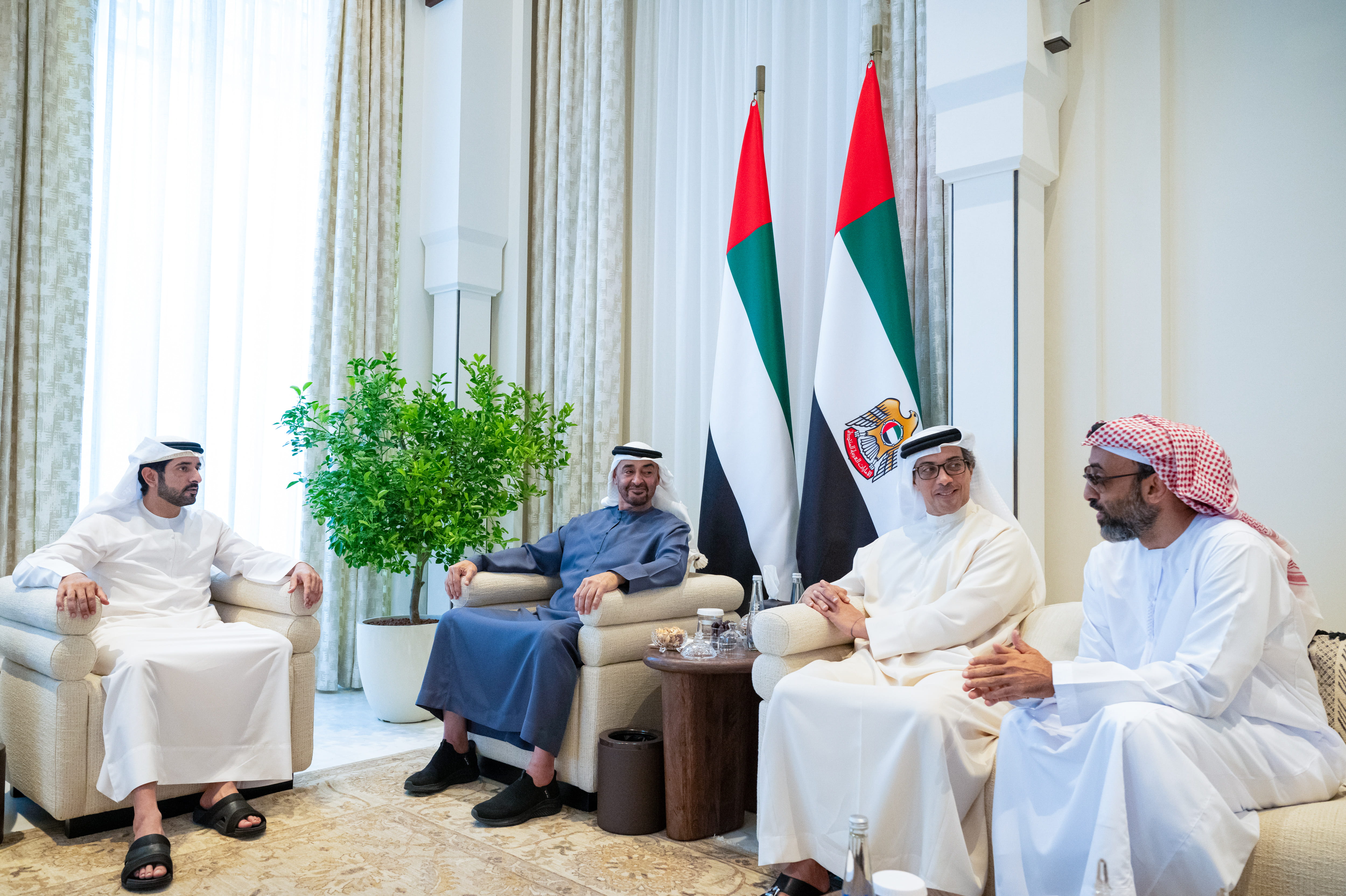 استقبل صاحب السمو الشيخ محمد بن زايد آل نهيان رئيس الدولة "حفظه الله" اليوم - في قصر الشاطئ في أبوظبي - سمو الشيخ حمدان بن محمد بن راشد آل مكتوم ولي عهد دبي نائب رئيس مجلس الوزراء وزير الدفاع..وذلك بحضور سمو الشيخ منصور بن زايد آل نهيان نائب رئيس الدولة نائب رئيس مجلس الوزراء رئيس ديوان الرئاسة.