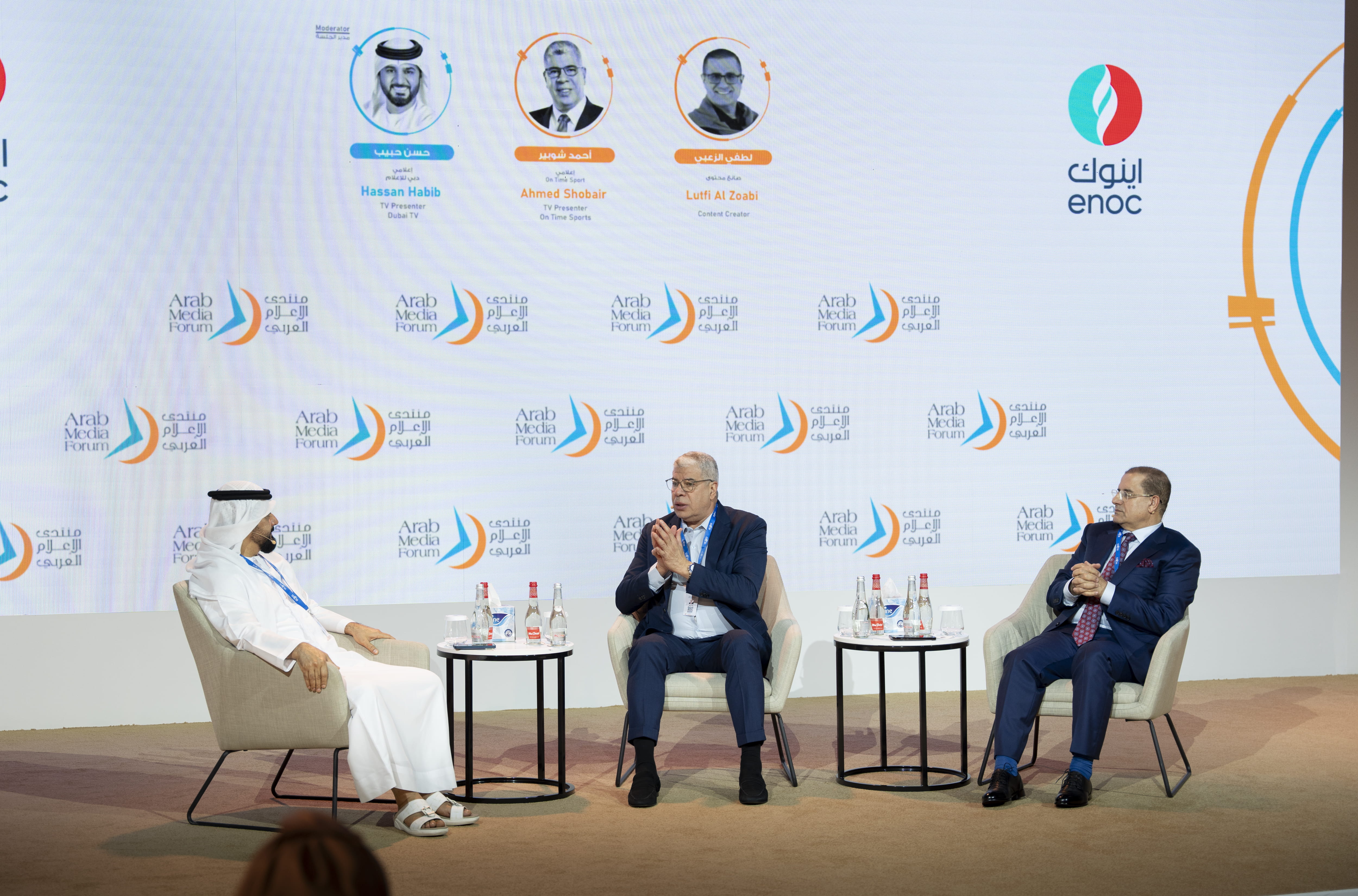 شهد اليوم الختامي لمنتدى الإعلام العربي 2024 الذي يعقد تحت مظلة قمة الإعلام العربي 2024 وينظمه نادي دبي للصحافة جلسة حوارية بعنوان "من يقف وراء التعصب الرياضي .. الإعلام أم الجمهور"، حيث استضافت الجلسة الإعلامي أحمد شوبير والإعلامي لطفي الزعبي، وأدارها الإعلامي حسن حبيب.