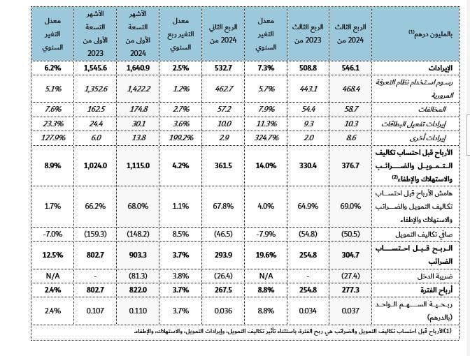 • 304.7 مليون درهم أرباح الربع الثالث بنسبة نمو 19.6%.