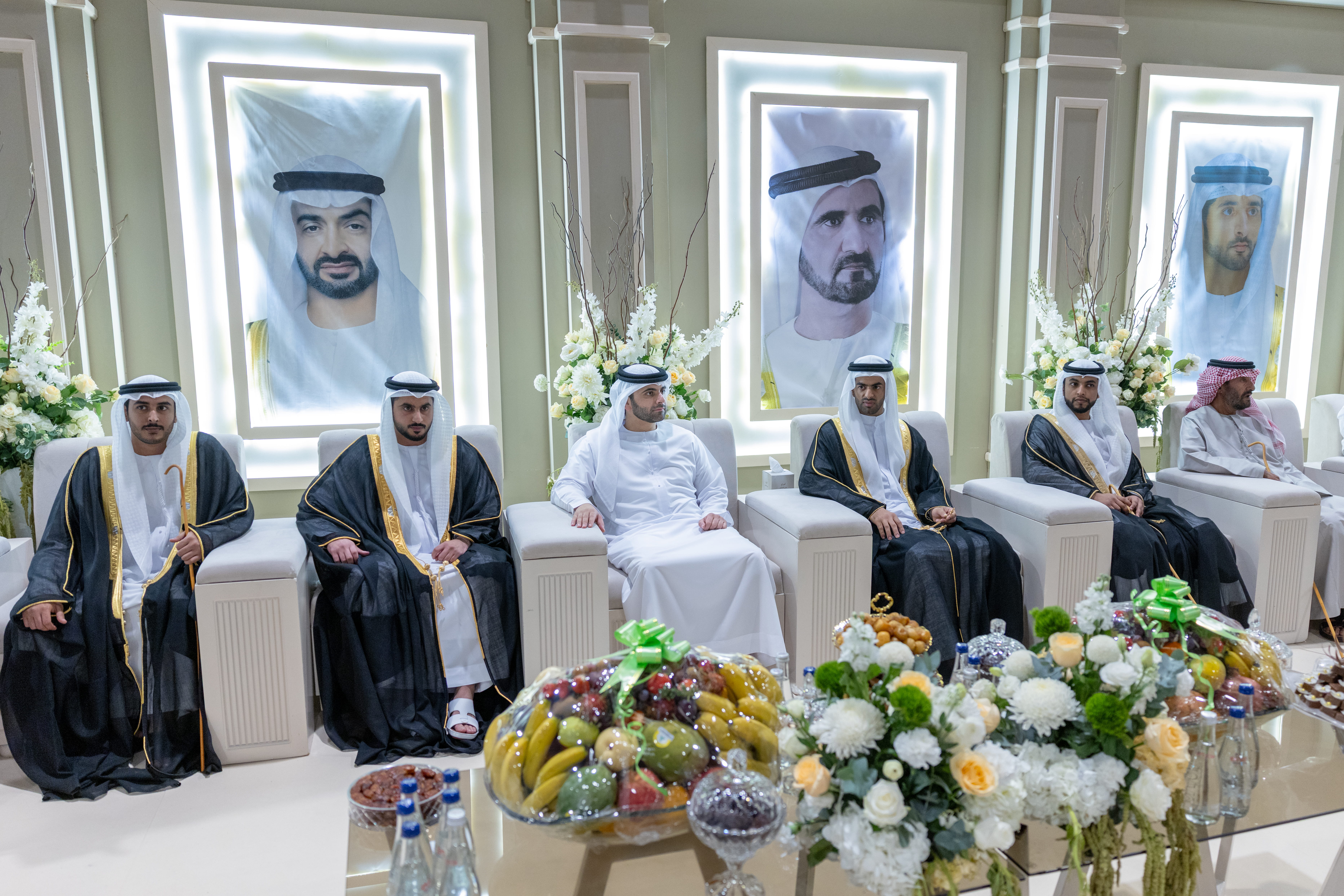 حضر سموّ الشيخ منصور بن محمد بن راشد آل مكتوم، رئيس اللجنة الأولمبية الوطنية، حفل الاستقبال الذي أقامه اليوم في قاعة الرمال بدبي، سالم سعيد بن غديّر وغديّر مطر بن غديّر وحمد ضعيف بن غديّر ومشعان سعيد بن غديّر بمناسبة زفاف أنجالهم مطر سالم سعيد بن غديّر، على كريمة علي عبيد بن غديّر، ومطر غديّر مطر بن غديّر على كريمة مطر سعيد بالمرير الكتبي، وراشد حمد ضعيف بن غديّر على كريمة سالم راشد بن غديّر ، وسعيد مشعان سعيد بن غديّر على كريمة صابر سعيد صابر الكتبي.