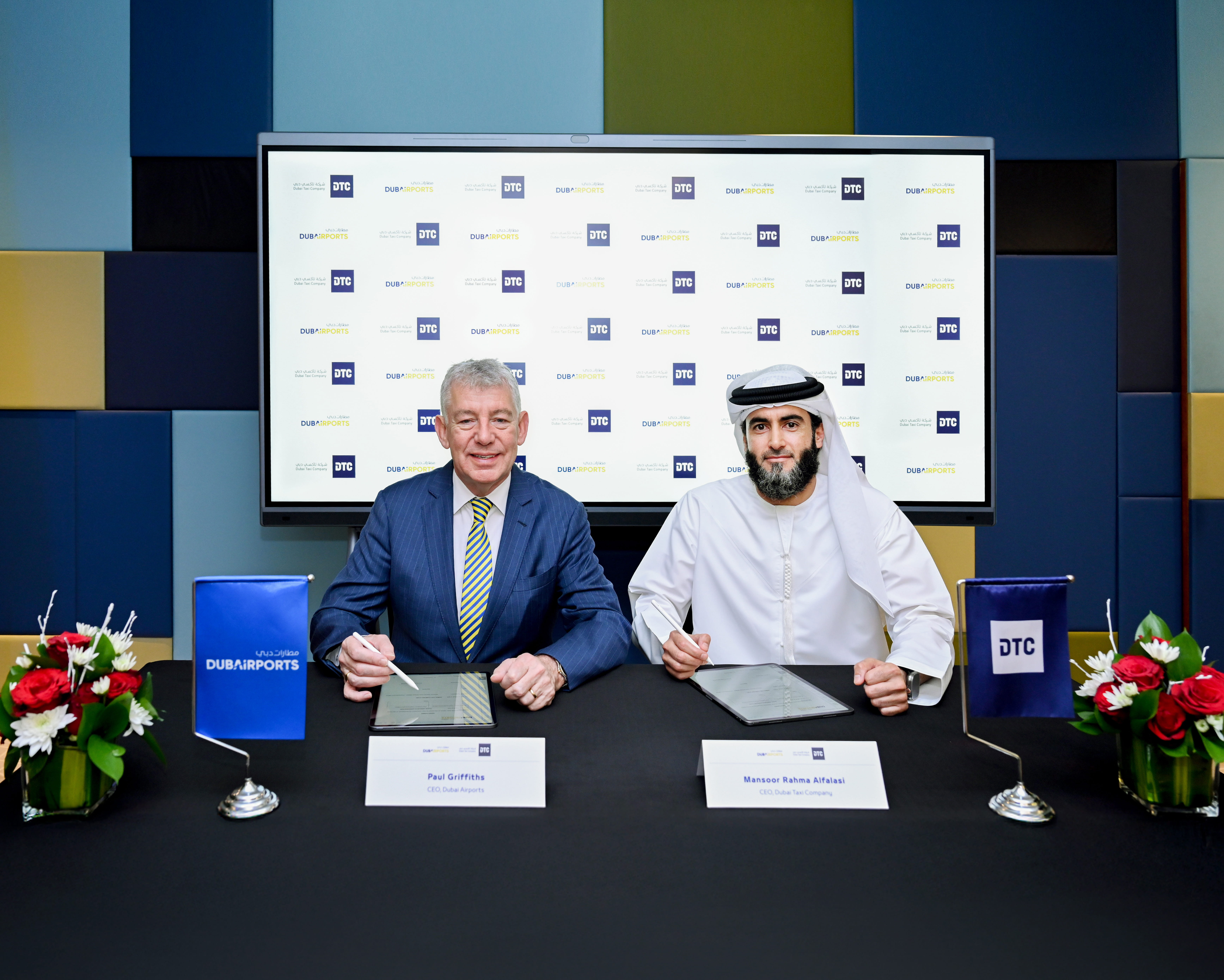 وقد جرت مراسم توقيع الاتفاقية بحضور كل من السيد منصور رحمه الفلاسي، الرئيس التنفيذي لشركة تاكسي دبي، وبول غريفيث، الرئيس التنفيذي لمطارات دبي، إلى جانب نخبة من كبار المسؤولين من كلا الجانبين.
