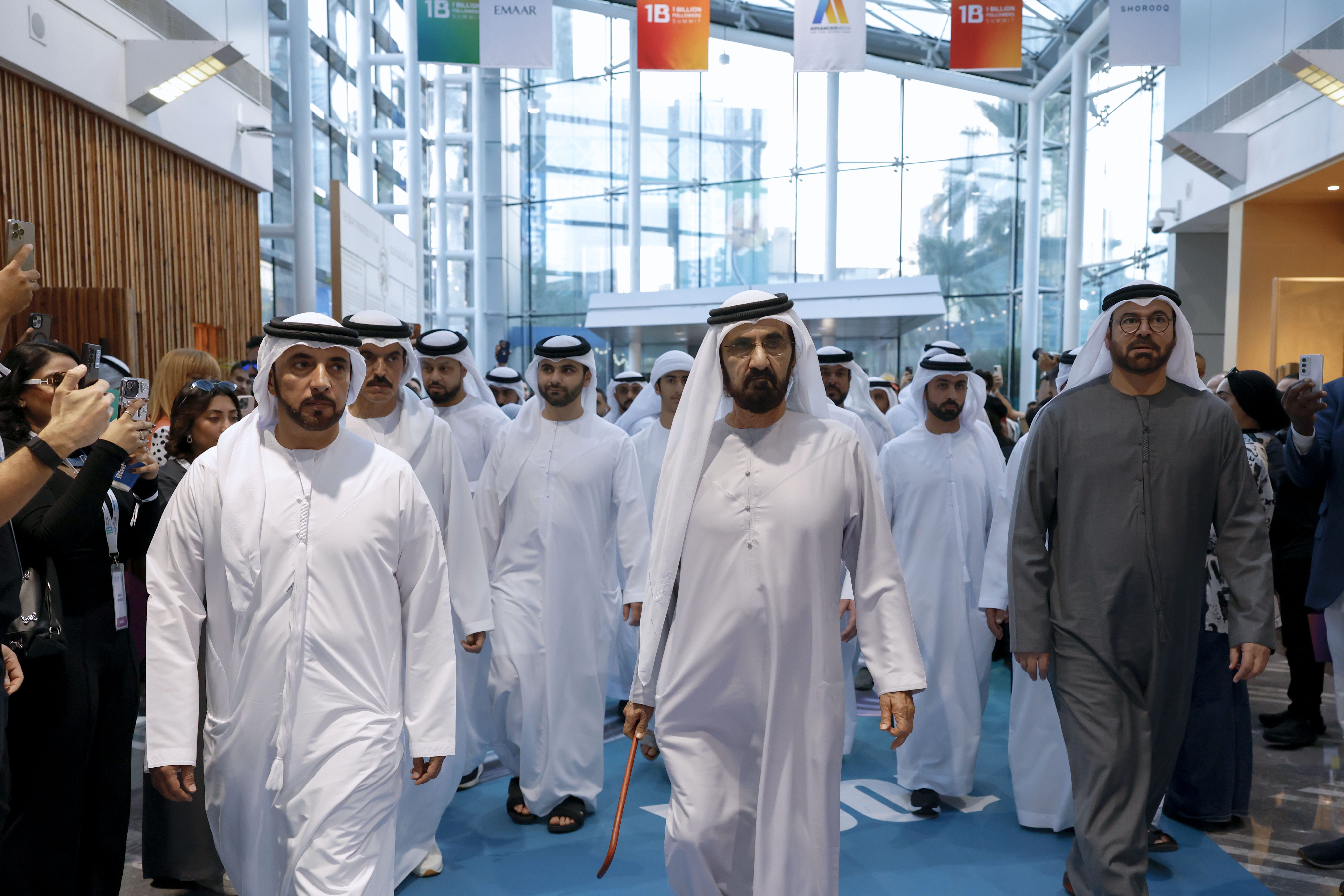 شهد صاحب السمو الشيخ محمد بن راشد آل مكتوم ، نائب رئيس الدولة رئيس مجلس الوزراء حاكم دبي ، رعاه الله، جانباً من فعاليات النسخة الثالثة من قمة المليار متابع، أكبر قمة عالمية في اقتصاد صناعة المحتوى، والتي ينظمها المكتب الإعلامي لحكومة دولة الإمارات على مدار 3 أيام وتستضيفها دولة الإمارات العربية المتحدة في أبراج الإمارات، ومركز دبي المالي العالمي، ومتحف المستقبل بدبي، تحت شعار "المحتوى الهادف"، بمشاركة أكثر من 15 ألف صانع محتوى وأكثر من 420 متحدثاً من أبرز المؤثرين والخبراء في العالم.