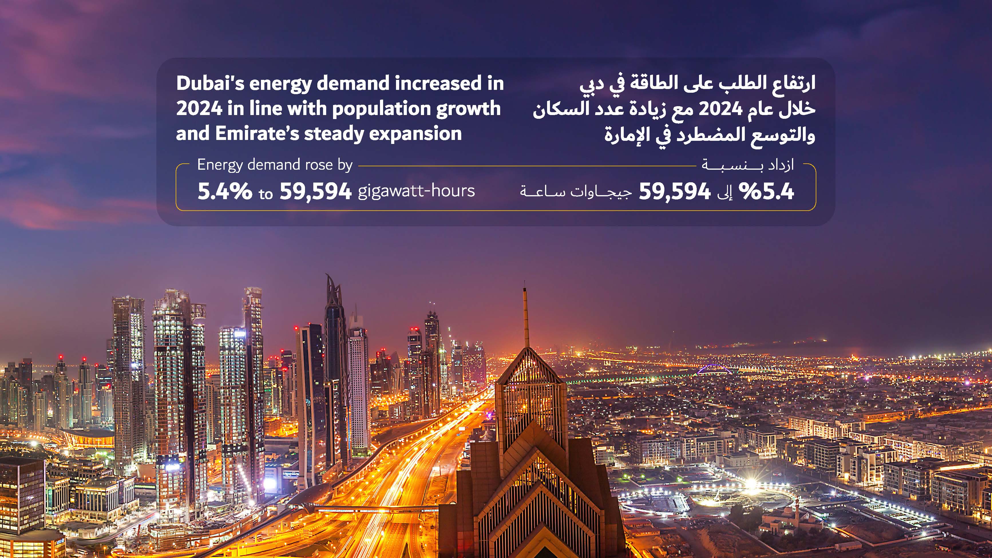 أعلن معالي سعيد محمد الطاير، العضو المنتدب الرئيس التنفيذي لهيئة كهرباء ومياه دبي، ارتفاع الطلب على الطاقة في إمارة دبي خلال عام 2024 بنسبة 5.4% مقارنة بعام 2023. وأوضح معاليه أن حجم الطلب على الطاقة في عام 2024 بلغ 59,594 جيجاوات ساعة مقارنة بـ 56,516 جيجاوات ساعة في عام 2023. وأشار معالي الطاير إلى أن الهيئة تواصل تطوير بنية تحتية رائدة للكهرباء والمياه ورفع قدرة شبكات النقل والتوزيع لتلبية الطلب المتزايد على الكهرباء والمياه، ومواكبة النمو الكبير في عدد سكان دبي، والتوسع المضطرد الذي تشهده الإمارة في مختلف الأنشطة الاقتصادية.