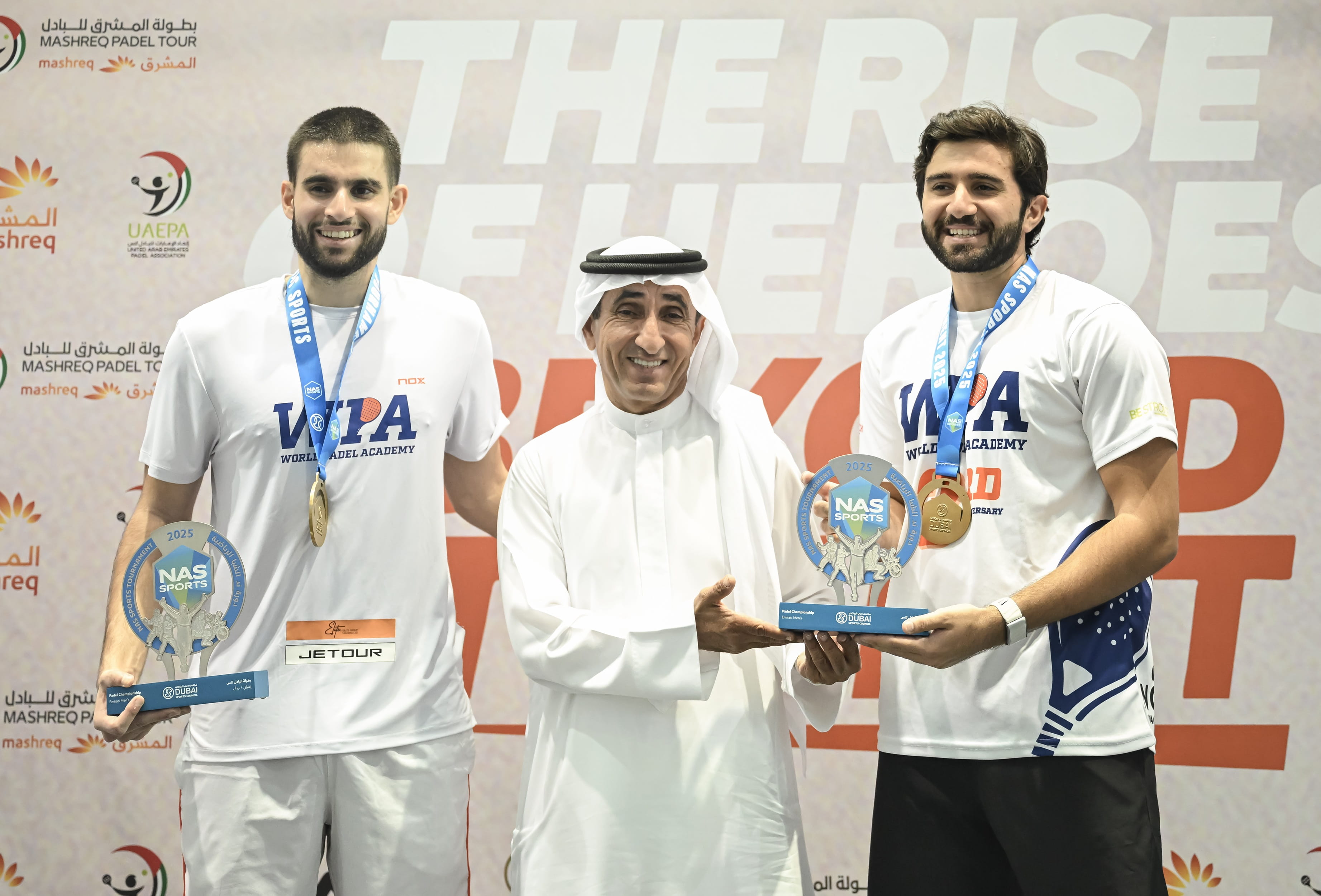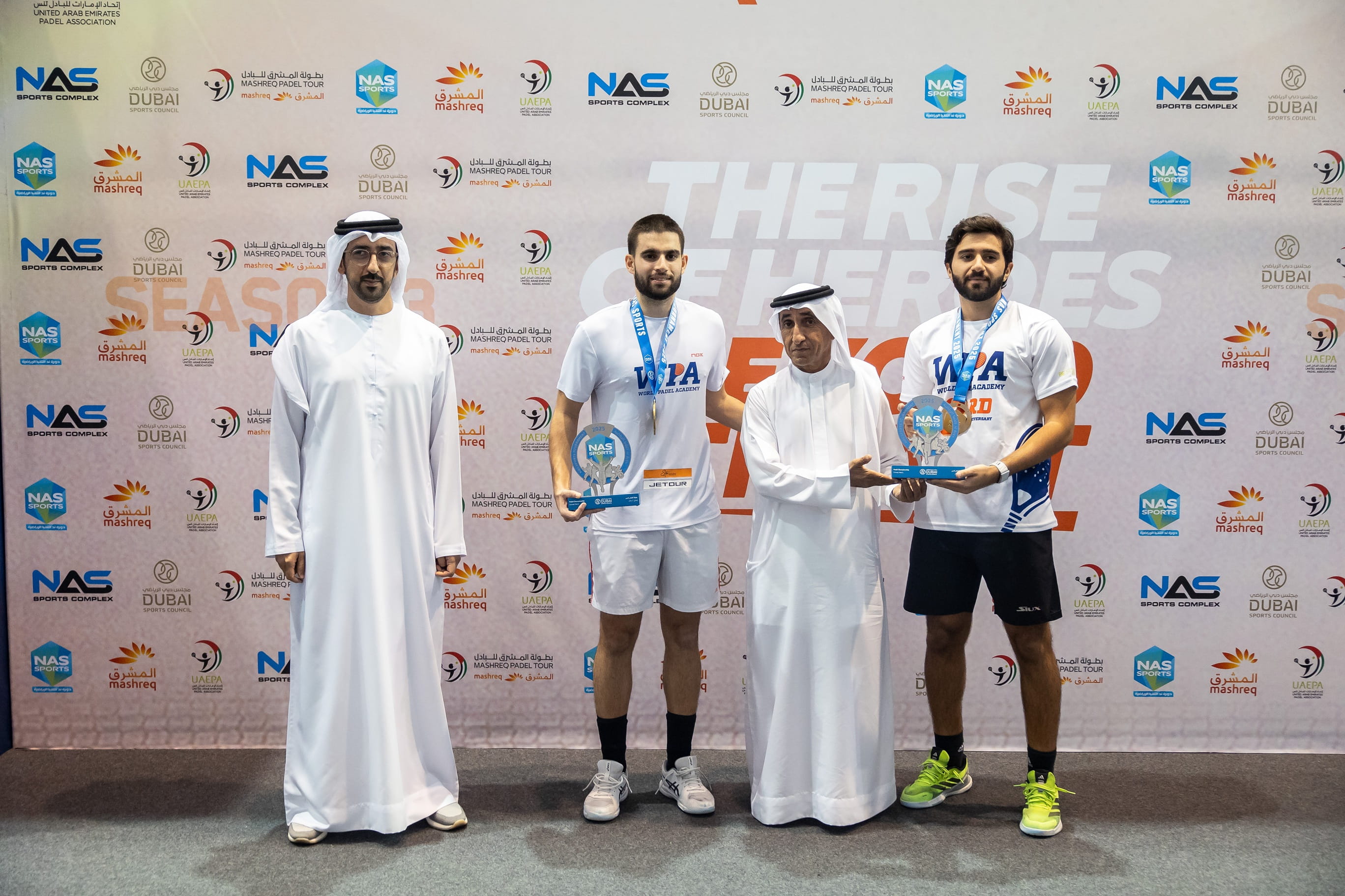 تَوَّج الشيخ سعيد بن مكتوم بن جمعة آل مكتوم، رئيس اتحاد الإمارات للبادل الفائزين في منافسات بطولة البادل للفئة المحلية للرجال والسيدات، التي أقيمت في صالة البادل بمجمع ند الشبا الرياضي، ضمن فعاليات النسخة الثانية عشرة من "دورة ند الشبا الرياضية"، الحدث الرياضي الأكبر من نوعه، الذي أطلقه ويرعاه سمو الشيخ حمدان بن محمد بن راشد آل مكتوم، ولي عهد دبي، نائب رئيس مجلس الوزراء، وزير الدفاع، رئيس المجلس التنفيذي لإمارة دبي، ويُقام سنويًا خلال شهر رمضان المبارك في مجمّع ند الشبا الرياضي، بتوجيهات سمو الشيخ منصور بن محمد بن راشد آل مكتوم، رئيس مجلس دبي الرياضي، تحت شعار "قدرات لا حدود لها".