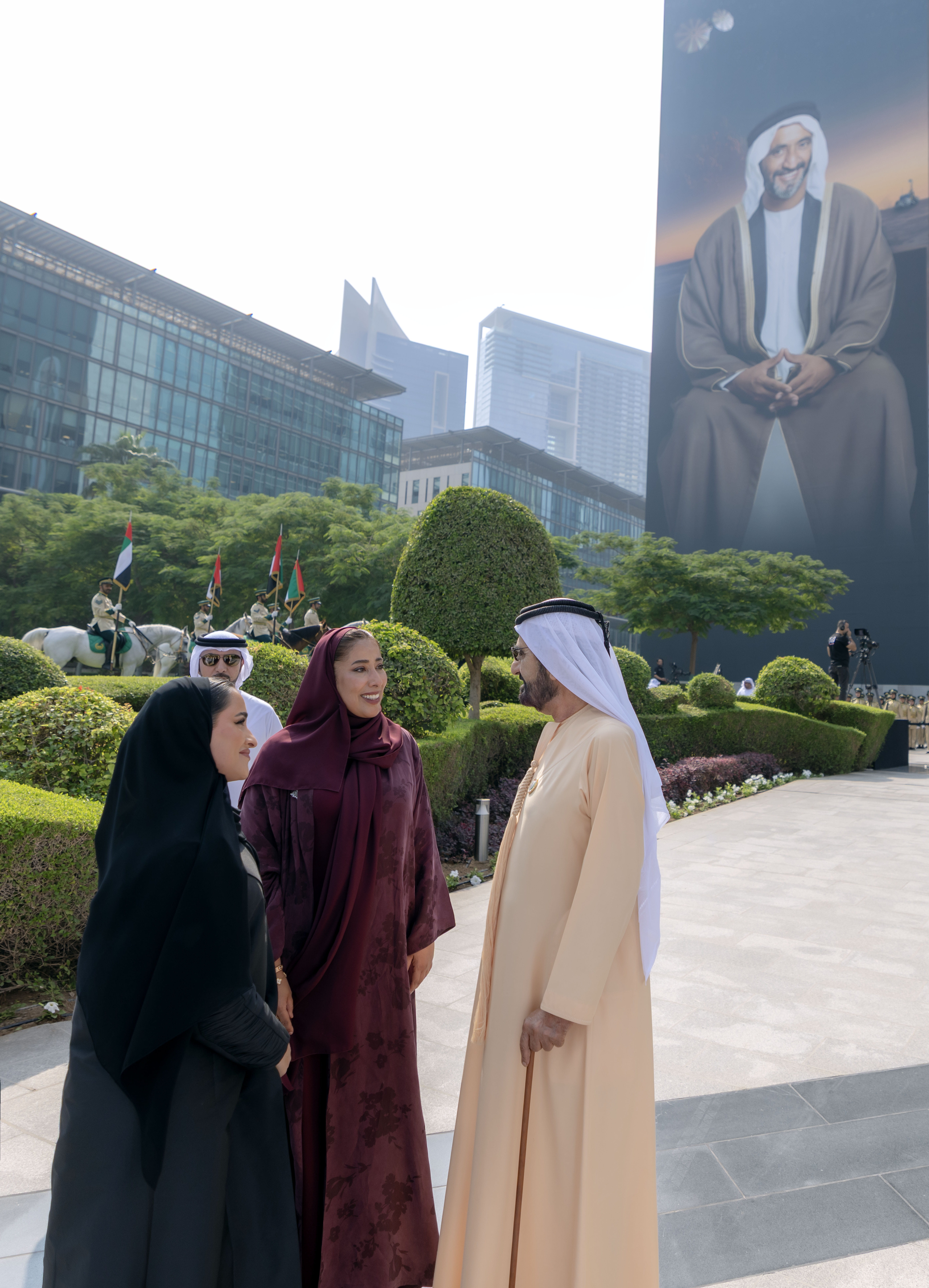 جاء ذلك بمناسبة "يوم العَلَم" حيث قام سموّه برفع عَلَم دولة الإمارات خلال احتفالية نظّمها براند دبي، الذراع الإبداعي للمكتب الإعلامي لحكومة دبي ومركز دبي المالي العالمي، أمام مبنى البوابة، في مقر المركز، ومقابل اللوحة الجدارية الضخمة التي حملت صورة الآباء المؤسسين المغفور لهما بإذن الله تعالى الشيخ زايد بن سلطان آل نهيان، والشيخ راشد بن سعيد آل مكتوم، طيب الله ثراهما،