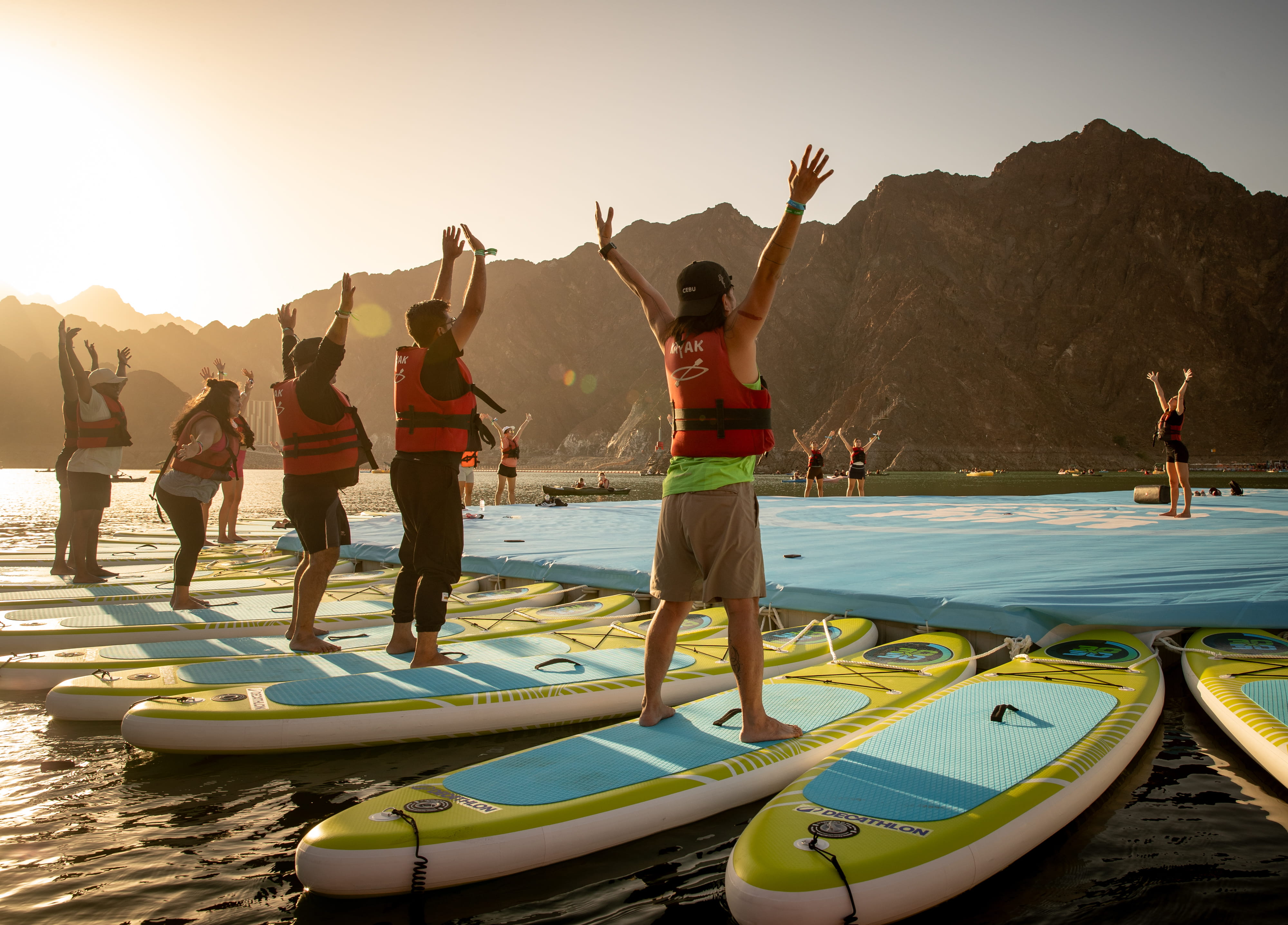 إلى جانب جلسات التجديف، استمتع المشاركون بتجارب كاياك مجانية طوال عطلة نهاية الأسبوع. ومع غروب الشمس على خلفية جبال الحجر، تحوّلت الأجواء إلى لحظات من الهدوء والسكينة مع جلسات يوغا استمرت لمدة 30 دقيقة على سطح المياه قادها مدرّبون محترفون لتوفّر للمشاركين فرصة مثالية للاسترخاء والتأمل، في مزيج متناغم يجمع بين النشاط البدني والصفاء الذهني وسط المناظر الجبلية الخلابة في حتّا.