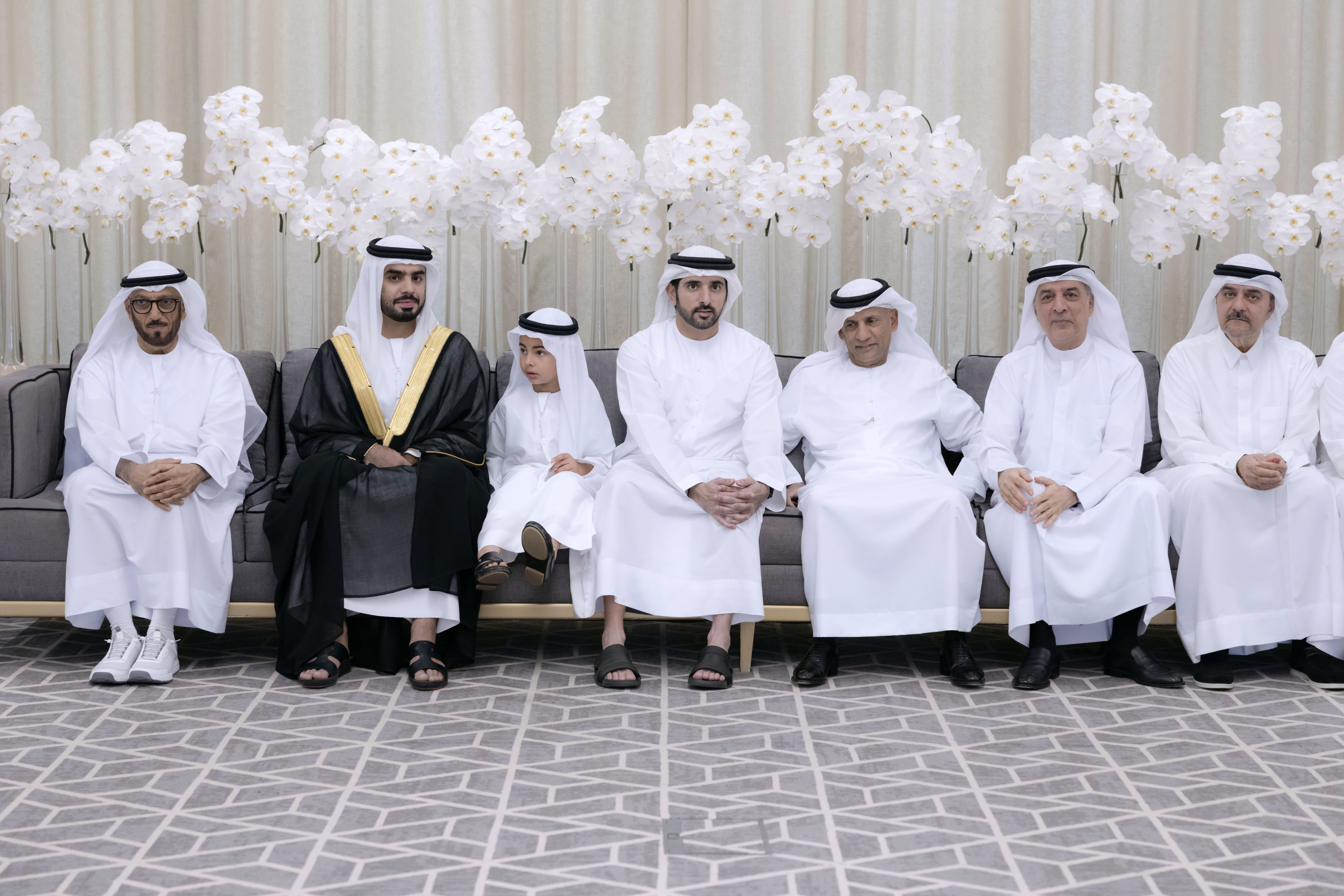 حضر سمو الشيخ حمدان بن محمد بن راشد آل مكتوم، ولي عهد دبي، نائب رئيس مجلس الوزراء وزير الدفاع، رئيس المجلس التنفيذي لإمارة دبي، حفل الاستقبال الذي أقامه خالد عبد الغفار حسين اليوم في مجلس الخوانيج ، بمناسبة زفاف نجله أحمد على كريمة سعادة الفريق محمد أحمد المري، مدير عام الإدارة العامة للهوية وشؤون الأجانب بدبي.