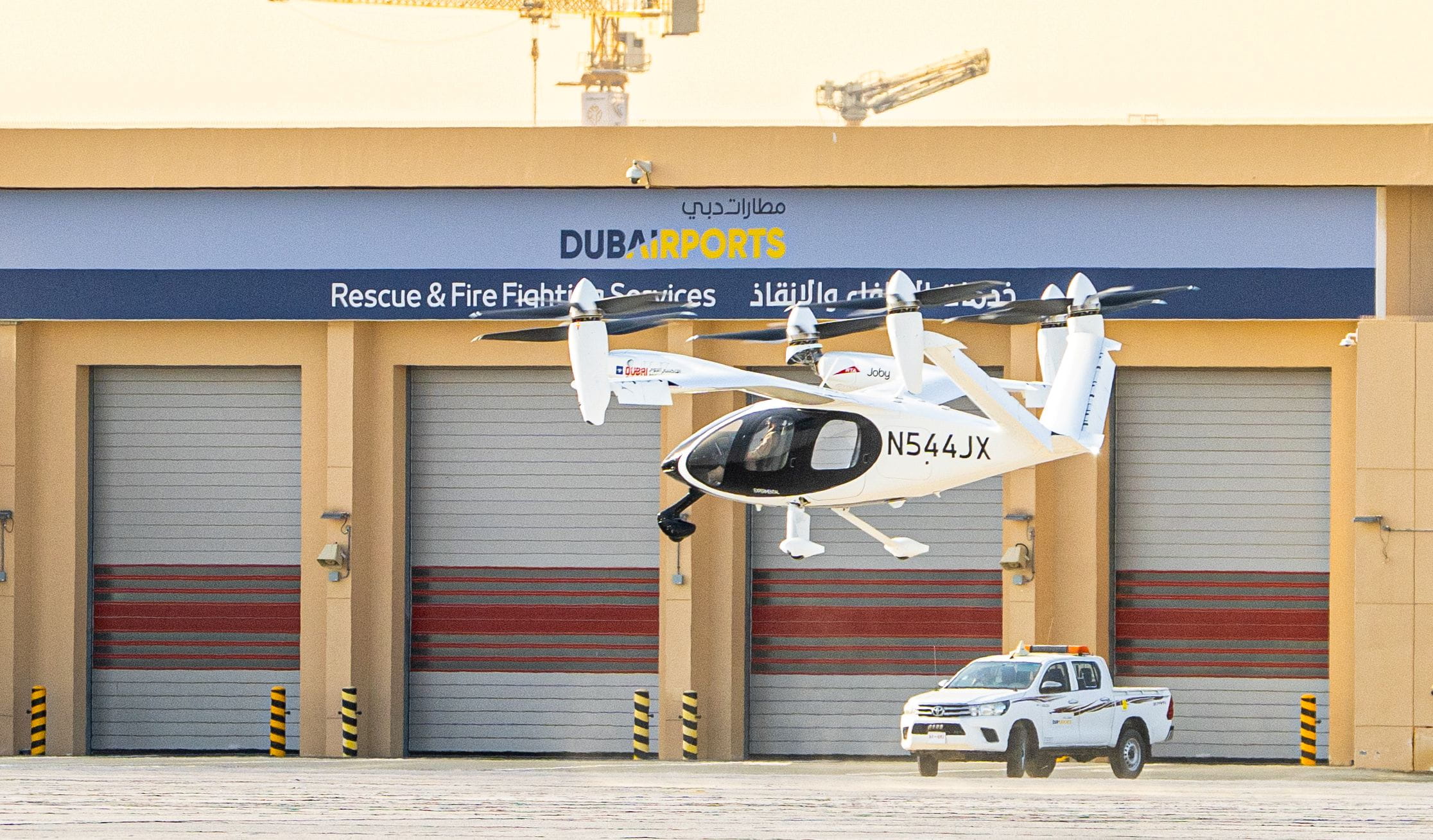 نفذت هيئة الطرق والمواصلات بالتعاون مع شركة "جوبـي أفييشن"، أول رحلة مأهولة للتاكسي الجوي الكهربائي للإقلاع والهبوط العمودي:(eVTOL) بين موقعين مختلفين، حيث انطلق التاكسي الجوي الكهربائي، من موقع اختبارات جوبي في مرغم إلى مطار آل مكتوم: (دبي ورلد سنترال) في رحلة استغرقت 17 دقيقة، وذلك تزامناً مع فعاليات معرض دبي للطيران 2025، وبهذه العملية تصبح "جوبي" أول شركة في العالم تُنفّذ رحلة مأهولة بتاكسي جوي كهربائي للإقلاع والهبوط العمودي بين نقطتين مختلفتين داخل دولة الإمارات، وأعلنت الهيئة إنجاز شركة "سكاي بورتس إنفراستركتشر"، البريطانية المتخصصة في تطوير البنية التحتية للتنقّل الجوي المتقدّم، 60% من أعمال إنشاء أول محطة للإقلاع والهبوط العمودي للتاكسي الجوي في الإمارة، بالقرب من مطار دبي الدولي (DXB)، حيث وصلت أعمال البناء إلى أعلى نقطة في المحطة التي تعد الأول من نوعها على مستوى العالم.