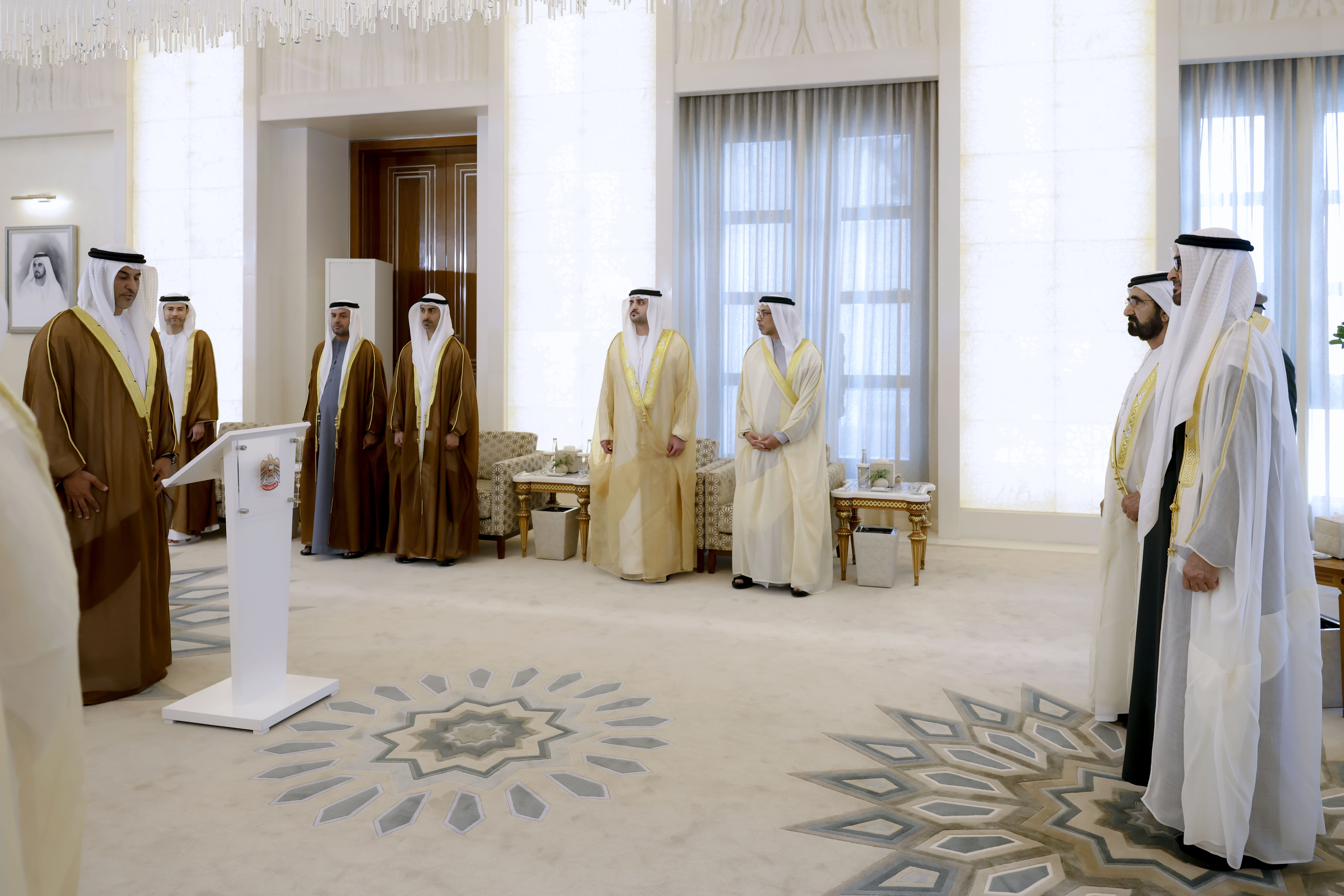 وشهد مراسم أداء اليمين..سمو الشيخ حمدان بن محمد بن راشد آل مكتوم ولي عهد دبي نائب رئيس مجلس الوزراء وزير الدفاع وسمو الشيخ مكتوم بن محمد بن راشد آل مكتوم النائب الأول لحاكم دبي نائب رئيس مجلس الوزراء وزير المالية والفريق سمو الشيخ سيف بن زايد آل نهيان نائب رئيس مجلس الوزراء وزير الداخلية وسمو الشيخ حمدان بن محمد بن زايد آل نهيان نائب رئيس ديوان الرئاسة للشؤون الخاصة ومعالي الشيخ محمد بن حمد بن طحنون آل نهيان مستشار رئيس الدولة ومعالي محمد بن عبد الله القرقاوي وزير شؤون مجلس الوزراء وعدد من الشيوخ والوزراء وكبار المسؤولين في الدولة.