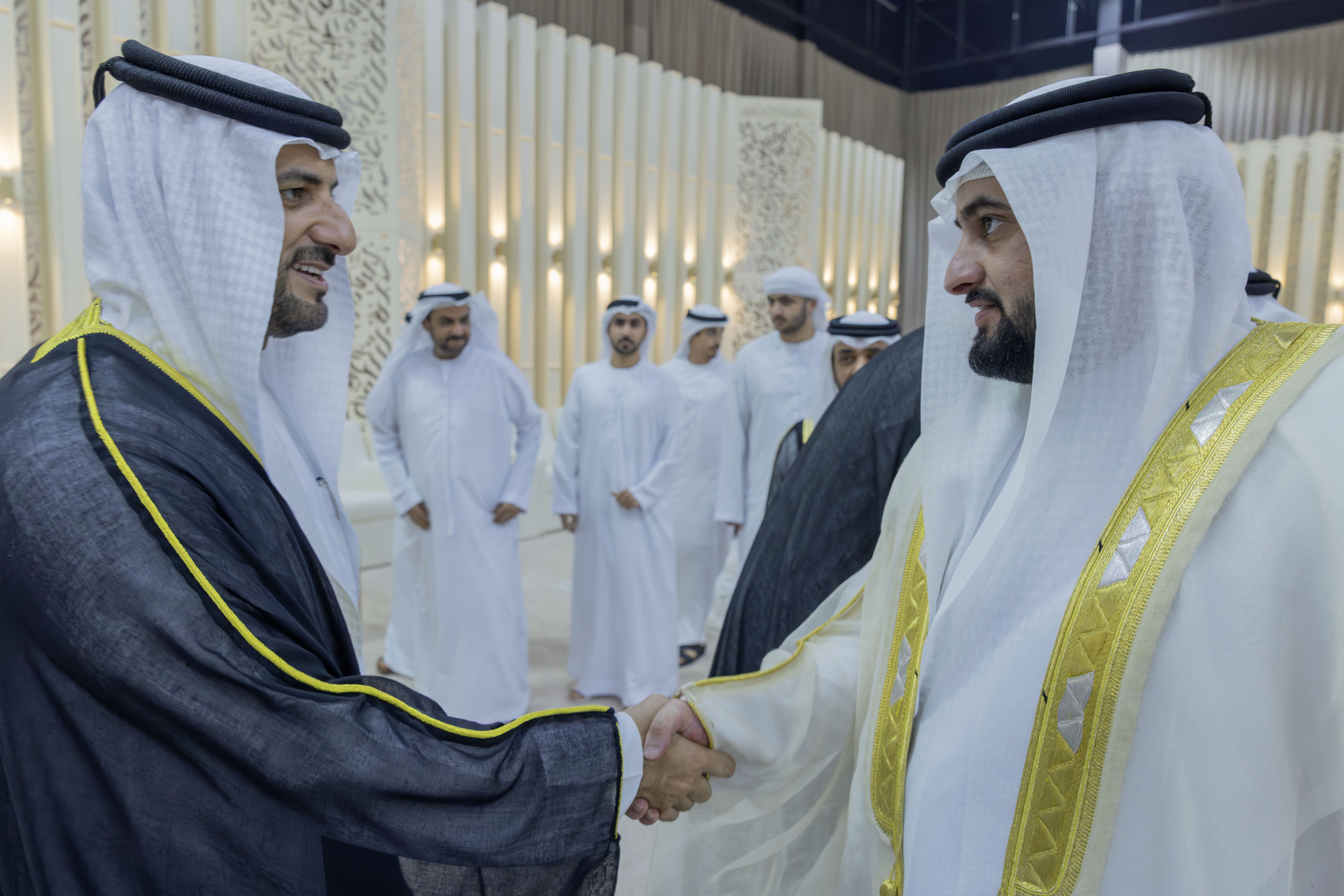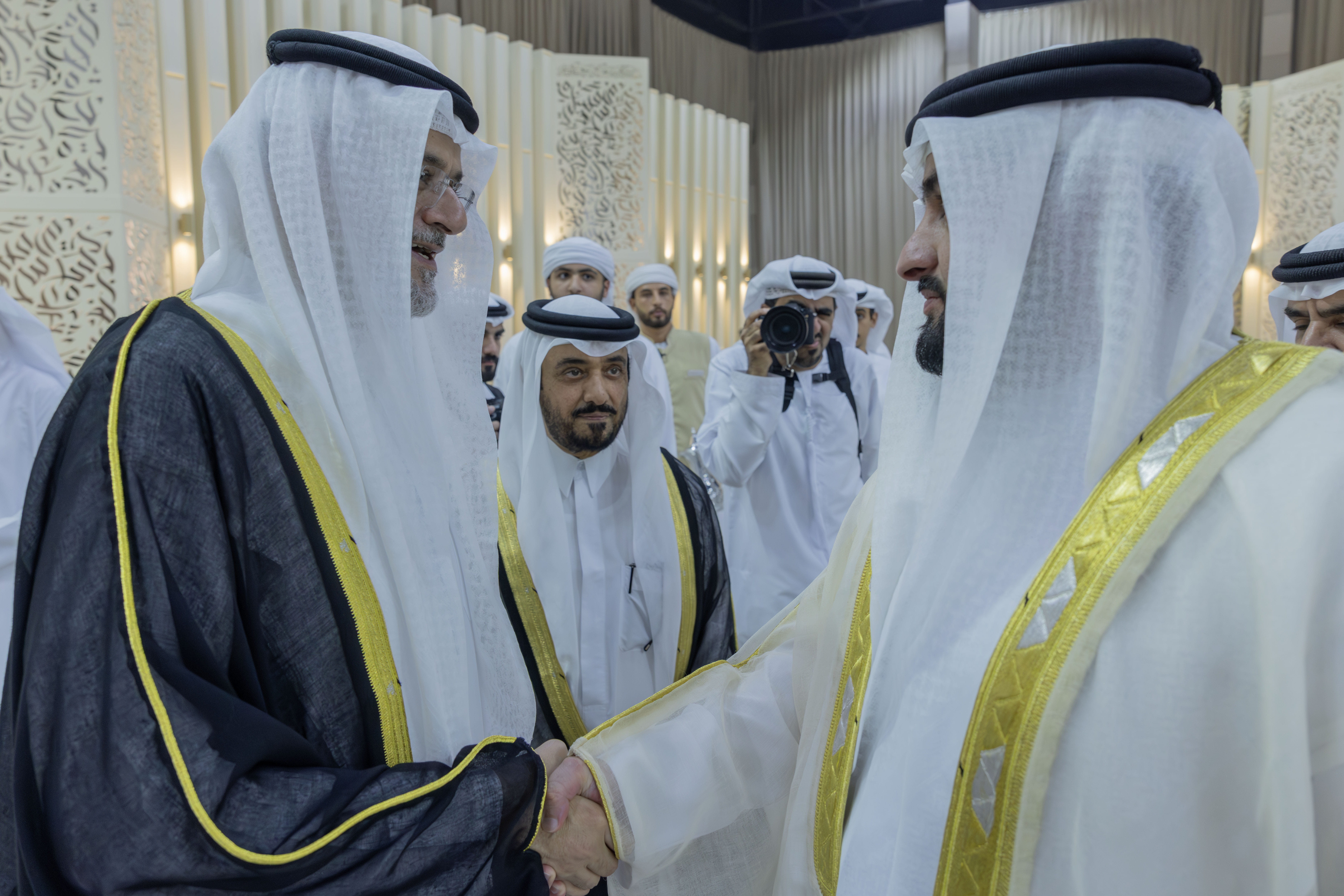 حضر سمو الشيخ أحمد بن محمد بن راشد آل مكتوم، النائب الثاني لحاكم دبي، اليوم (الخميس)، حفل الاستقبال الذي أقامه سمو الشيخ سلطان بن محمد بن سلطان القاسمي، ولي عهد ونائب حاكم الشارقة، بمناسبة زفاف نجله الشيخ أحمد بن سلطان بن محمد بن سلطان القاسمي، على كريمة سمو الشيخ سلطان بن أحمد بن سلطان القاسمي، نائب حاكم الشارقة، في نادي الشارقة للجولف والرماية.