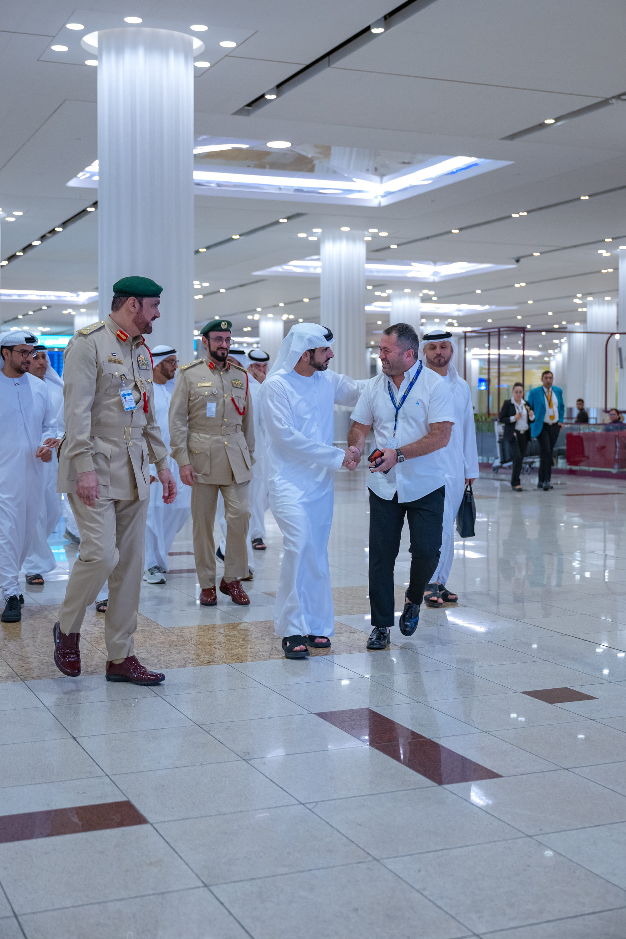 رافق سموّ الشيخ حمدان بن محمد بن راشد آل مكتوم خلال الزيارة معالي الفريق عبدالله خليفة المري، القائد العام لشرطة دبي، ومعالي هلال سعيد المري، المدير العام لدائرة الاقتصاد والسياحة في دبي، وسعادة الفريق محمد أحمد المري، مدير عام الإدارة العامة للهوية وشؤون الأجانب – دبي، وسعادة الفريق عوض حاضر المهيري، نائب رئيس جهاز أمن الدولة بدبي.