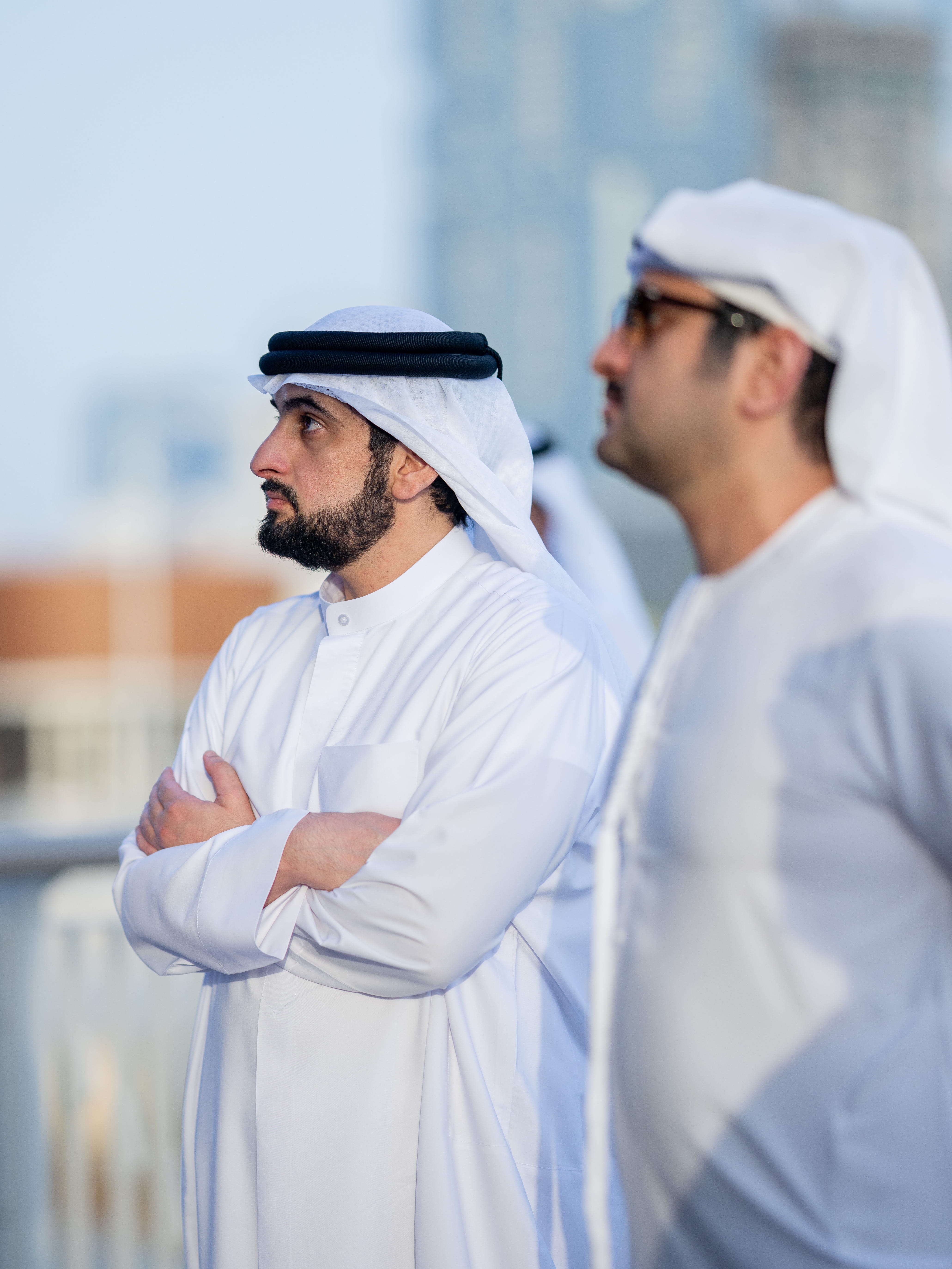 رافق صاحب السموّ الشيخ محمد بن راشد آل مكتوم خلال الزيارة سموّ الشيخ منصور بن محمد بن راشد آل مكتوم، رئيس مجلس دبي لأمن المنافذ والحدود، ومعالي مطر محمد الطاير، رئيس اللجنة العليا للتخطيط الحضري في إمارة دبي، ومعالي هلال سعيد المري، المدير العام لدائرة الاقتصاد والسياحة في دبي.