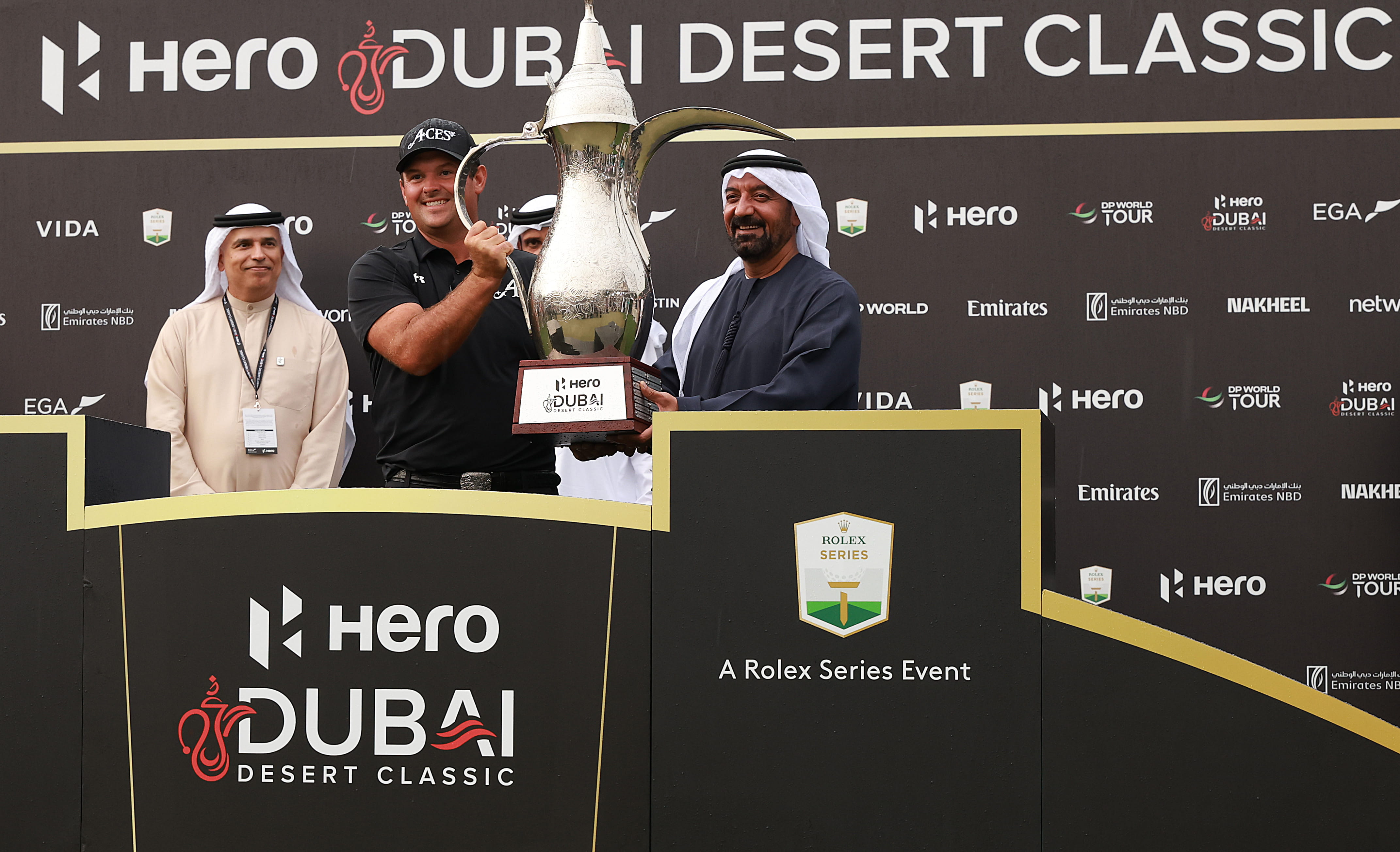 فيما قدم كريس ماي، الرئيس التنفيذي لجولف دبي، بطاقة عضوية مدى الحياة في نادي الإمارات للجولف، للأمريكي باتريك ريد، في تقليد متبع دائماً يناله الفائز ببطولة هيرو دبي ديزرت كلاسيك.