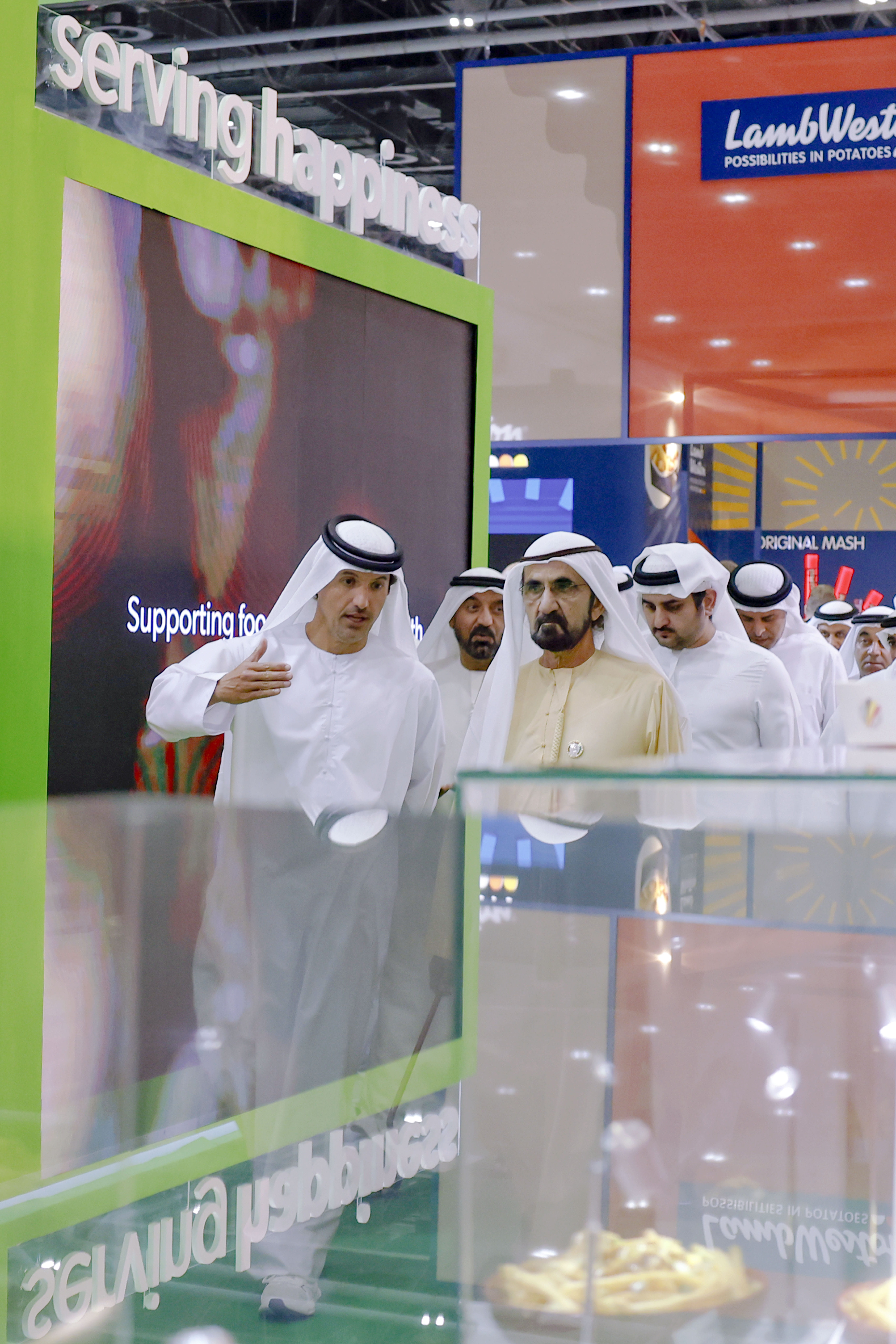 وحرص صاحب السمو الشيخ محمد بن راشد آل مكتوم، خلال جولته التي رافقه خلالها، سموّ الشيخ مكتوم بن محمد بن راشد آل مكتوم، النائب الأول لحاكم دبي، نائب رئيس مجلس الوزراء وزير المالية، وسمو الشيخ أحمد بن سعيد آل مكتوم، رئيس هيئة دبي للطيران المدني، الرئيس الأعلى الرئيس التنفيذي لطيران الإمارات والمجموعة، ومعالي هلال سعيد المرّي، المدير العام لسلطة مركز دبي التجاري العالمي ودائرة الاقتصاد والسياحة في دبي، على تفقّد عدد من أجنحة الدول والشركات المشاركة، حيث اطّلع على أحدث ما تقدّمه من منتجات غذائية وحلول مبتكرة وتقنيات حديثة تدعم تطوير صناعة الغذاء وتعزيز استدامتها.