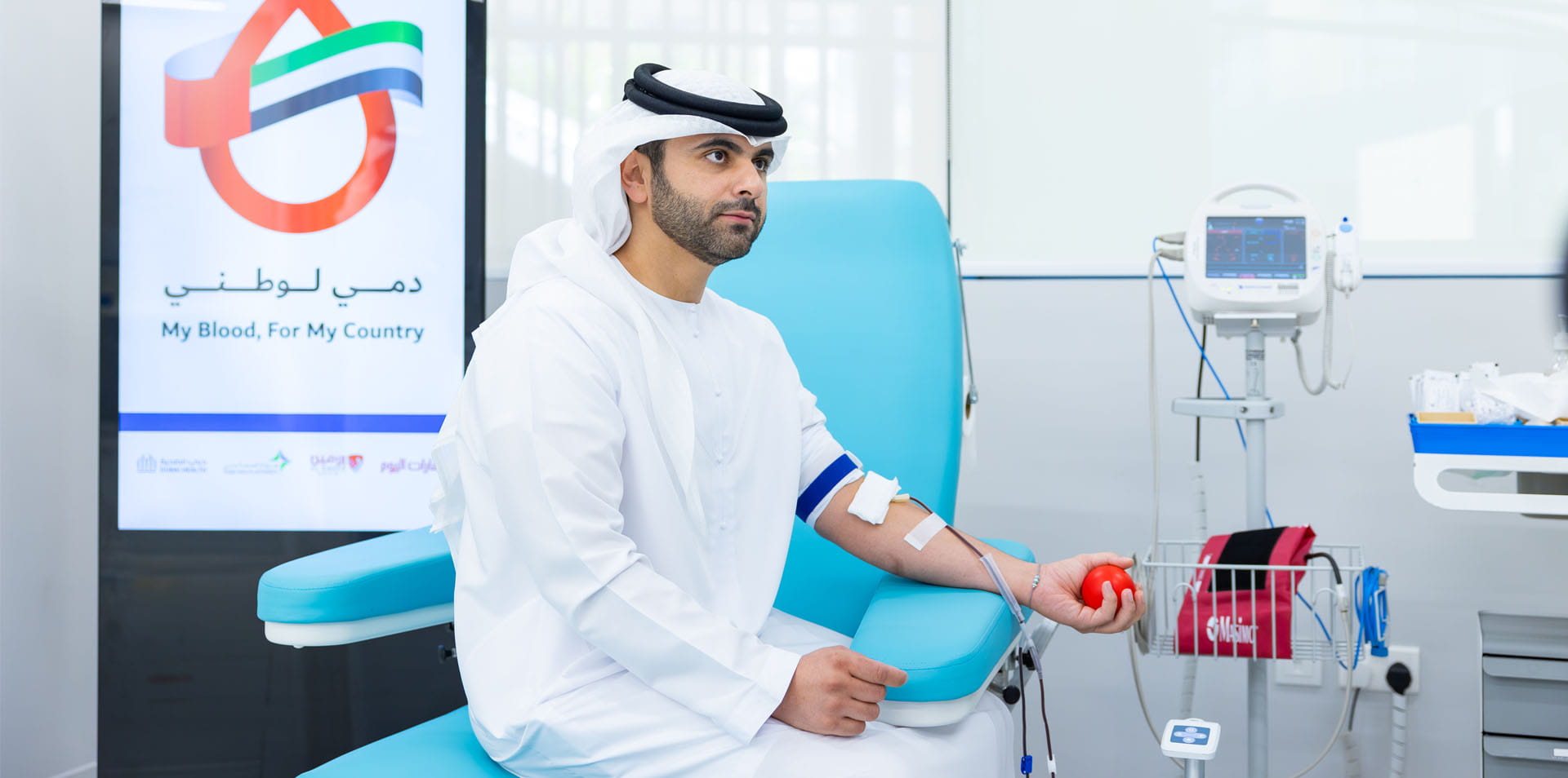 Mansoor bin Mohammed donates blood in support of the ‘My Blood, for My Country’ campaign