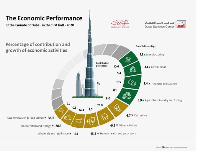 Economic growth in Dubai in H1 2020 declined by 10.8% and is expected to end the year with a 6.2% contraction