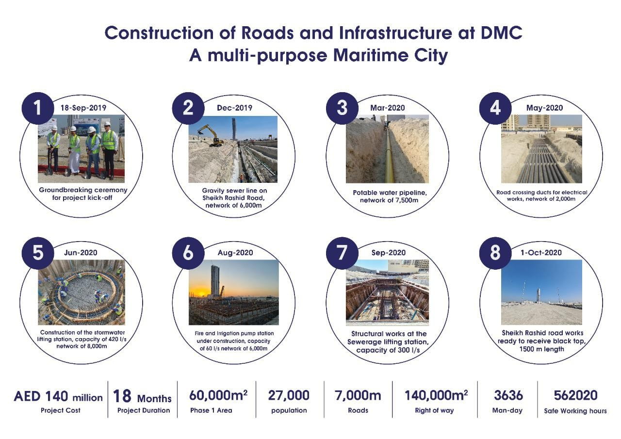 The development consolidates DMC’s status as a leading maritime services provider. The significant achievement to date in the Phase I of DMC’s residential and commercial development relates to the completion of all underground services on Sheikh Rashid Road, one of the project’s main arteries providing access to the sub-developers’ plots located alongside the seaside corniche area. Additional features completed in this area also include road infrastructure, illumination and other elements.