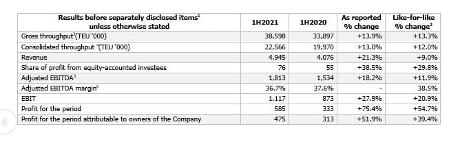 DP World Limited has announced strong financial results for the six months to 30 June 2021 with EBITDA growing 18.2% year-on-year.
