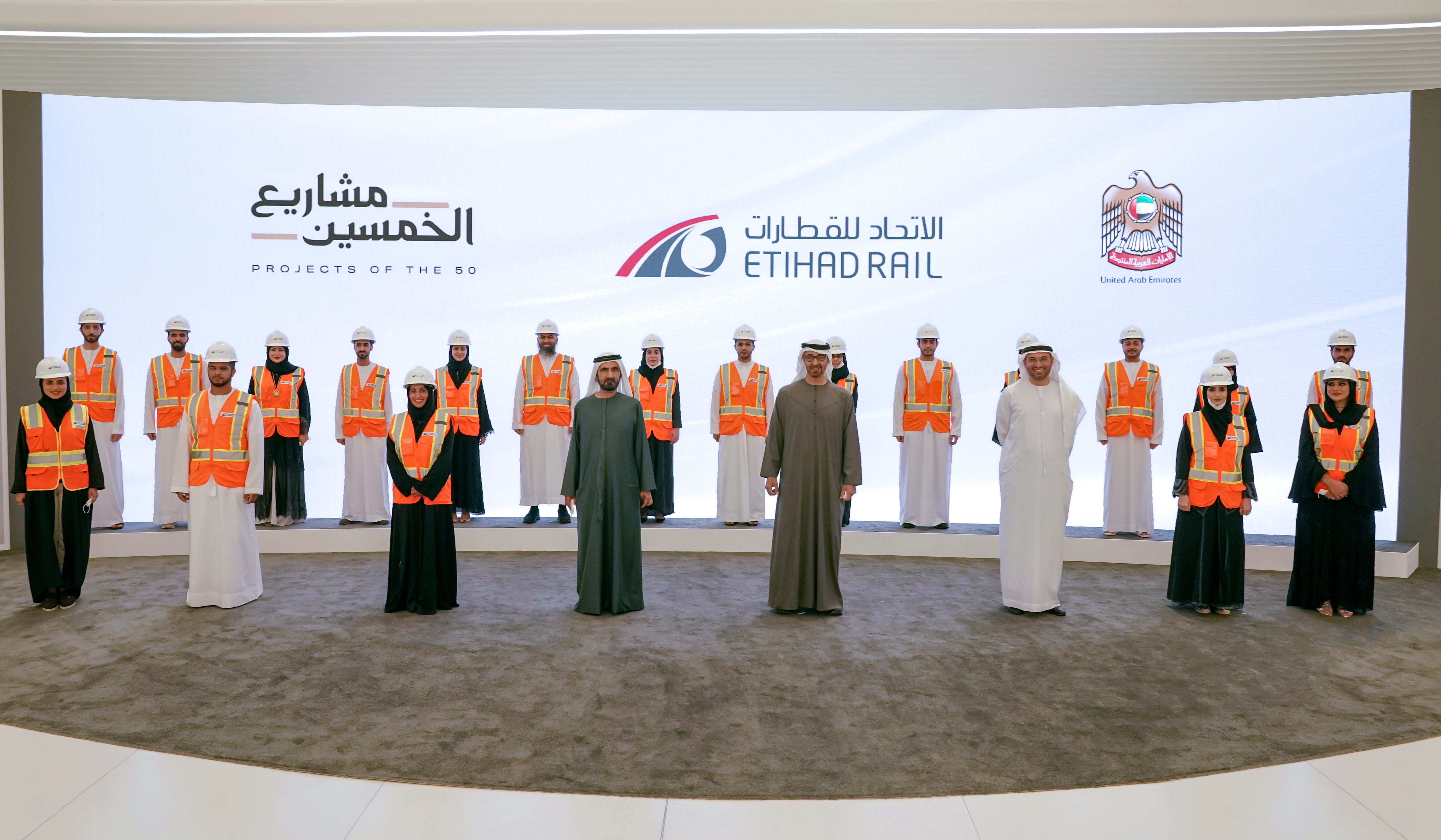 In the presence of His Highness Sheikh Mohammed bin Rashid Al Maktoum, Vice President, Prime Minister and Ruler of Dubai, and His Highness Sheikh Mohamed bin Zayed Al Nahyan, Crown Prince of Abu Dhabi and Deputy Supreme Commander of the UAE Armed Forces, the UAE Government announced the launch of the UAE Railways Programme, the largest integrated system for transporting goods and passengers across the country.