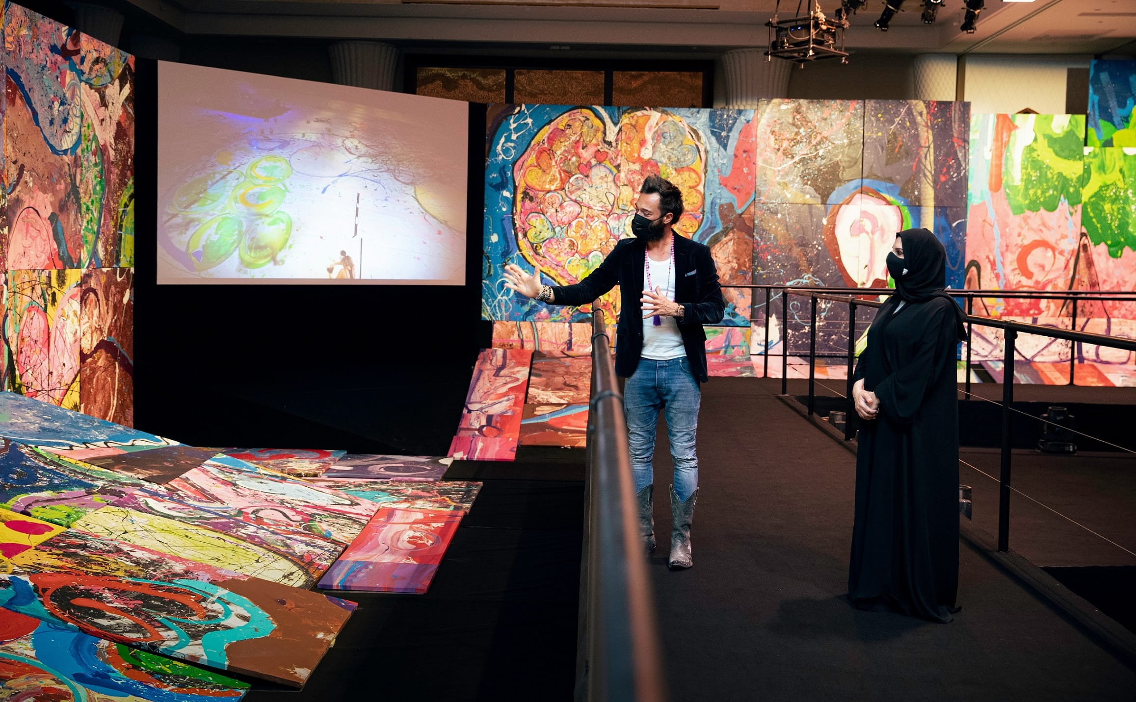 The Director General of Dubai Culture and Arts Authority, Hala Badri, visited the Palm’s ballroom at Atlantis, The Palm to view ‘The Journey of Humanity’ painting by British artist Sacha Jafri, which broke the Guinness World Record for the largest art canvas in the world. Sacha completed the painting as part of his ‘Humanity Inspired’ charitable initiative.