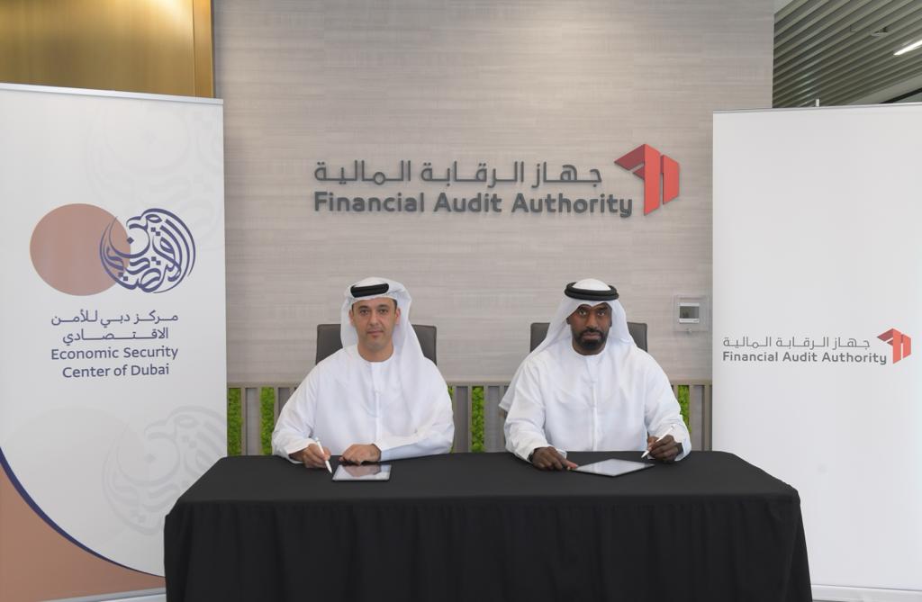 The agreement signed by and between HE. Faisal bin Sulaitin, Executive Director of Economic Security Center of Dubai as the First Party and HE. Abdulrahman Al Hareb, Director General of the Financial Audit Authority as the Second Party. Both parties assured the significance of this partnership as a base of cooperation in several areas.