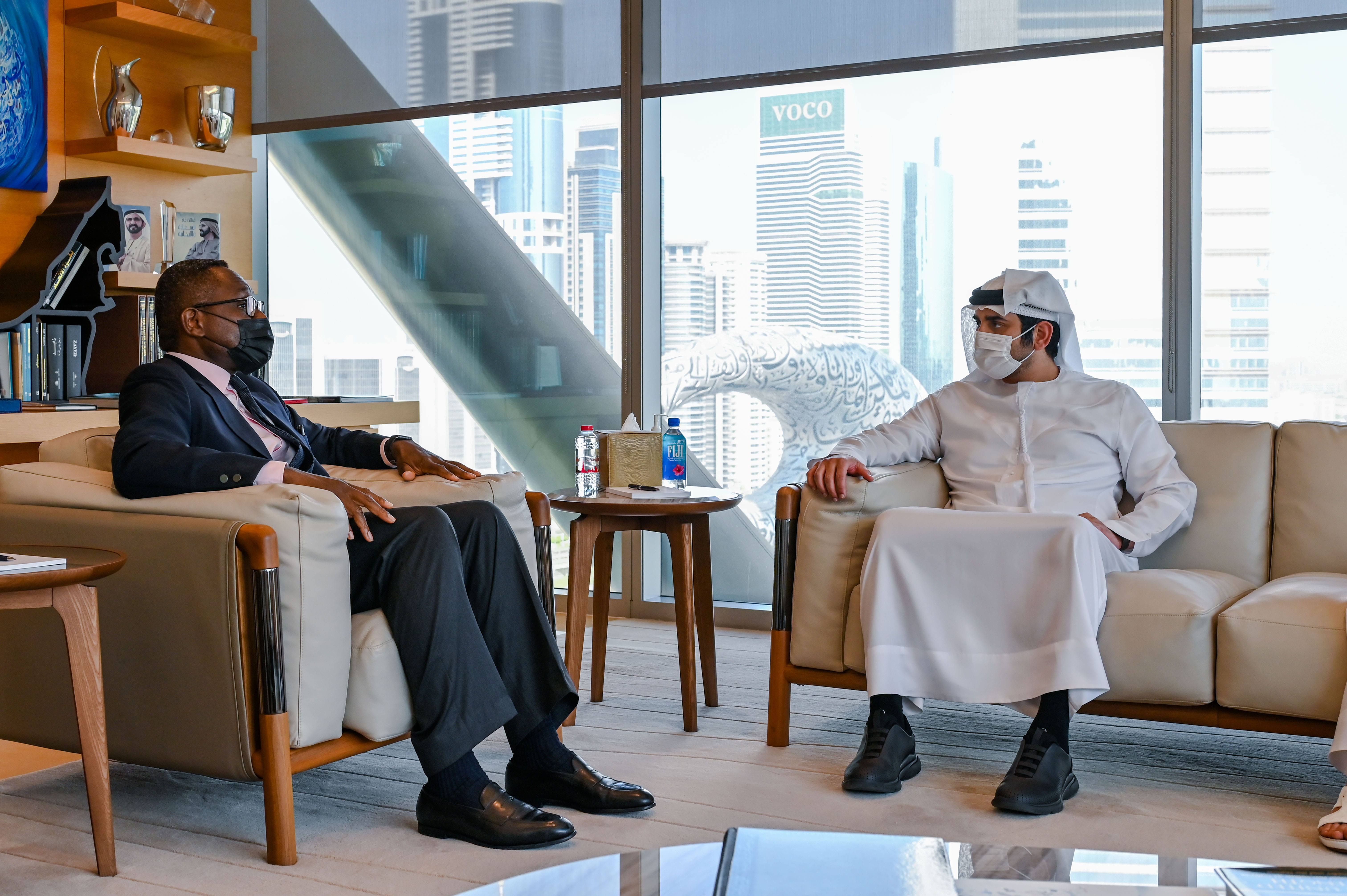 His Highness Sheikh Maktoum bin Mohammed bin Rashid Al Maktoum, Deputy Ruler of Dubai, Deputy Prime Minister and Minister of Finance, today met with Bernard Mensah, President of International, Bank of America, at the Dubai International Financial Centre (DIFC).