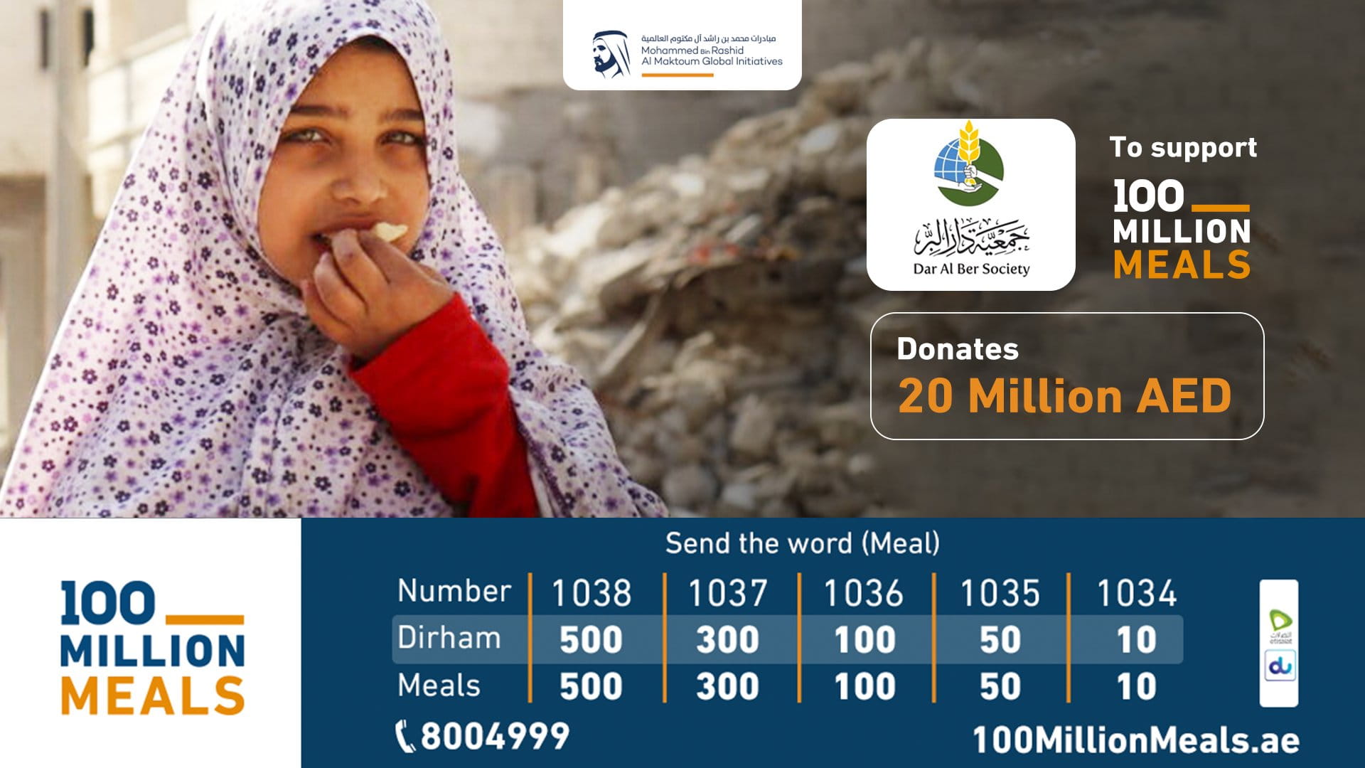 Mohammed Souhil Al Muhairi, Executive Director of the Dar Al Ber Society, said: "The 100 Million Meals campaign embodies the UAE’s commitment to its core values of giving, especially during Ramadan, the month of goodness, righteousness, and charity. The UAE plays a significant humanitarian role globally, and the vision and directives of our leadership has paved the way for an effective and sustainable implementation of philanthropy."