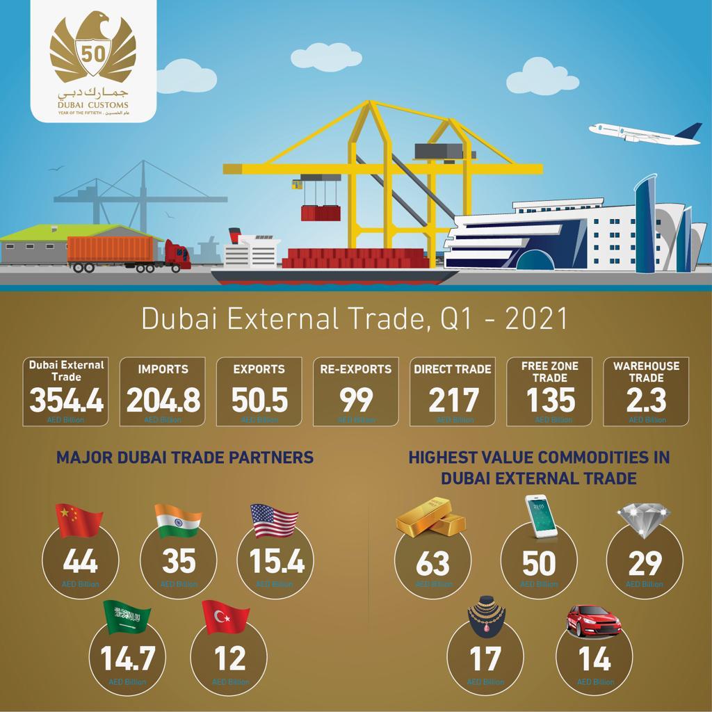 Dubai’s economy has proved its resilience and ability to recover quickly from the global repercussions of the COVID-19 pandemic by achieving high levels of external non-oil trade growth in Q1 2021.