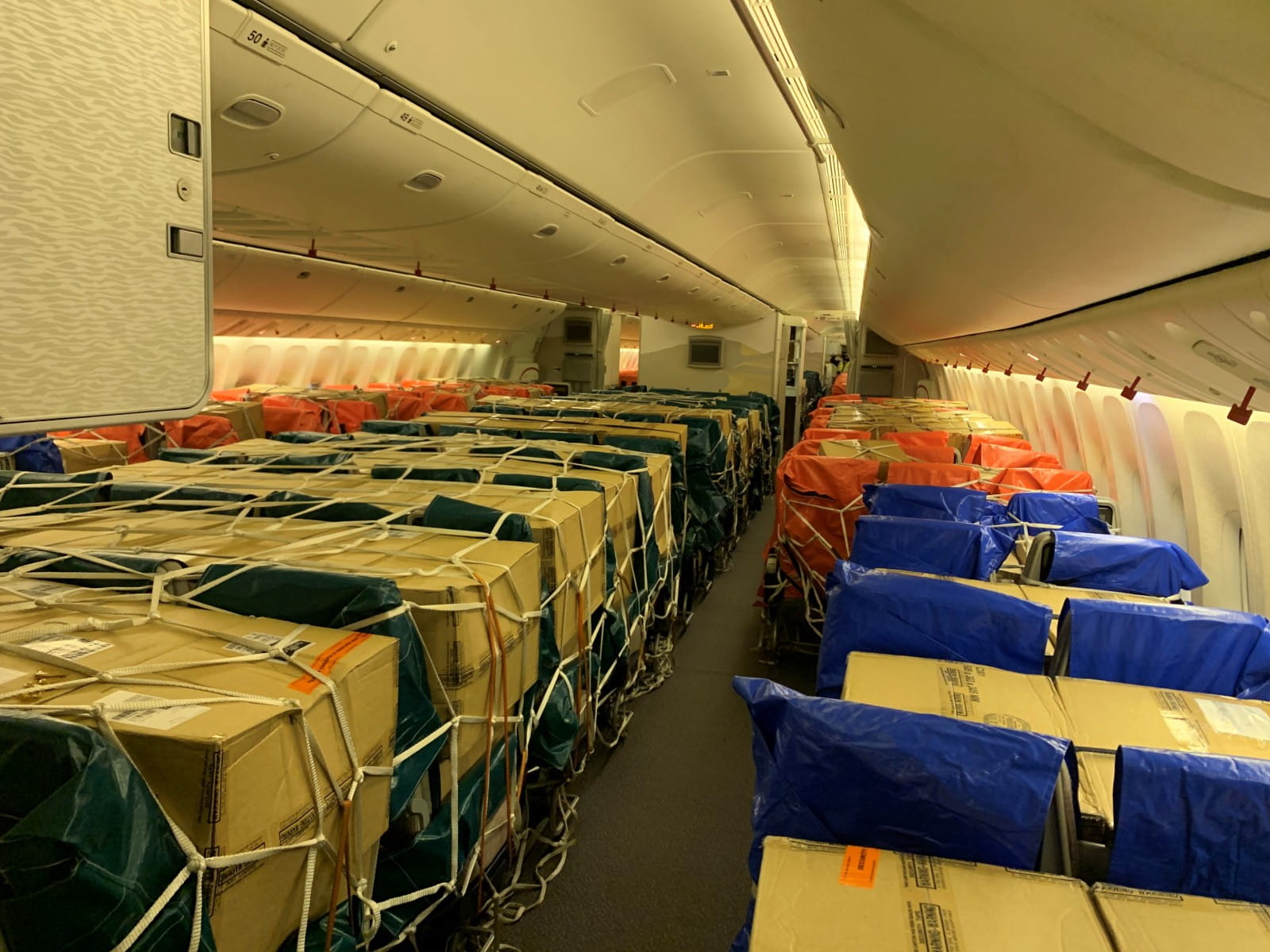 • Carrier operates more than 3,100 flights with cargo loaded on passenger seats and in overhead bins on Boeing 777-300ER aircraft