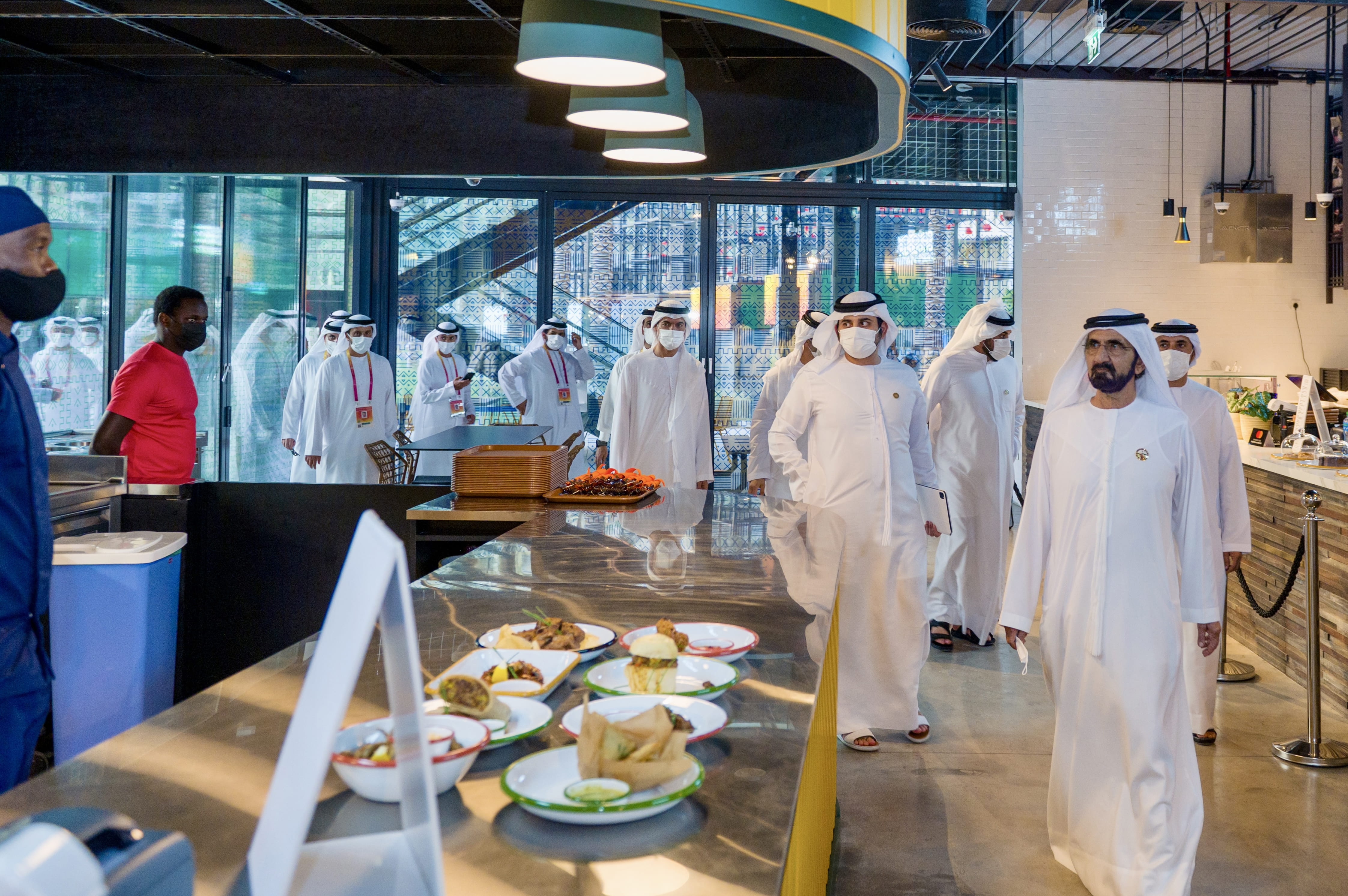 His Highness’s remarks came as he visited the African dining hall Alkebulan, which showcases African culture through a colourful culinary lens. His Highness was accompanied by His Highness Sheikh Maktoum bin Mohammed bin Rashid Al Maktoum, Deputy Ruler of Dubai and Deputy Prime Minister and Minister of Finance; His Highness Sheikh Ahmed bin Mohammed bin Rashid Al Maktoum, Chairman of the Dubai Media Council; His Highness Sheikh Mansoor bin Mohammed bin Rashid Al Maktoum; and HE Reem Al Hashimy, UAE Minister of State for International Cooperation and Director General of Expo 2020 Dubai.