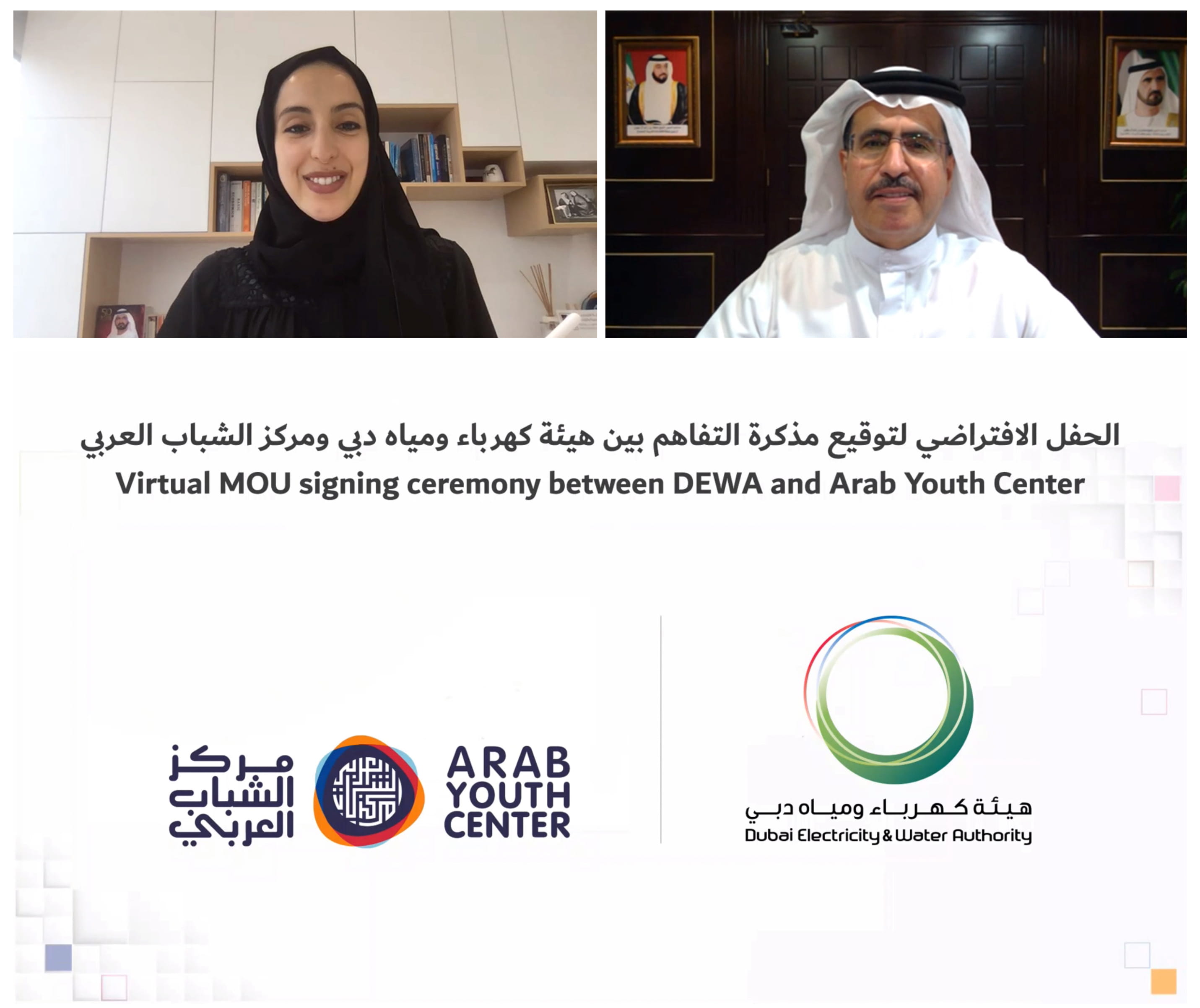 The MoU was signed by HE Saeed Mohammed Al Tayer, MD & CEO of DEWA and HE Shamma bint Suhail Faris Al Mazrui, Minister of State for Youth Affairs and Vice Chair of the Arab Youth Center. Officials from both sides were present.