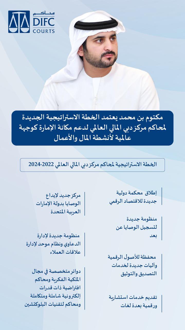 His Highness Sheikh Maktoum bin Mohammed bin Rashid Al Maktoum, Deputy Ruler of Dubai, Deputy Prime Minister, Minister of Finance and President of the Dubai International Financial Centre has approved the Dubai International Financial Centre (DIFC) Courts Strategic Work Plan 2022- 2024.